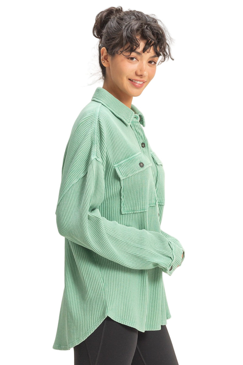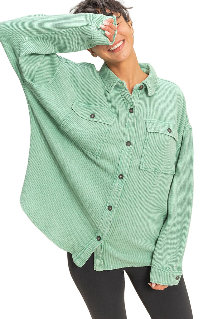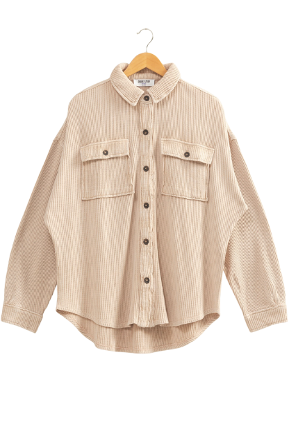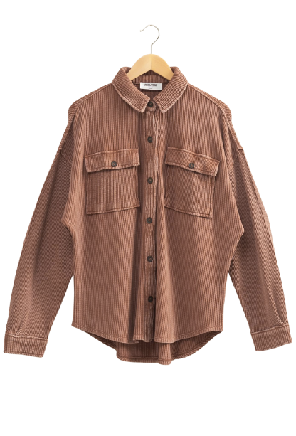 Embrace the crisp fall days with the Take A Day Trip With Me Shacket. Crafted from cozy waffle knit fabric, it offers lightweight warmth perfect for layering over your favorite outfits. This versatile shacket easily transitions from casual outings to brisk evening strolls, making it your go-to piece for effortless seasonal style.