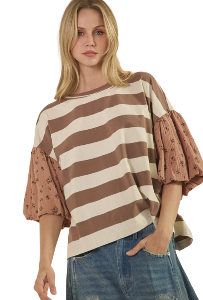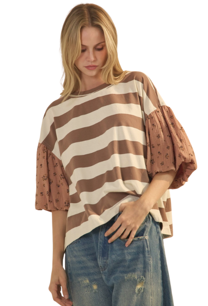 Elevate your fall wardrobe with the Can You Blame Me Top, featuring charming floral puff sleeves and a timeless striped pattern. This top blends feminine details with classic style, making it perfect for layering on crisp autumn days. Embrace cozy elegance that effortlessly transitions from casual outings to stylish gatherings.
