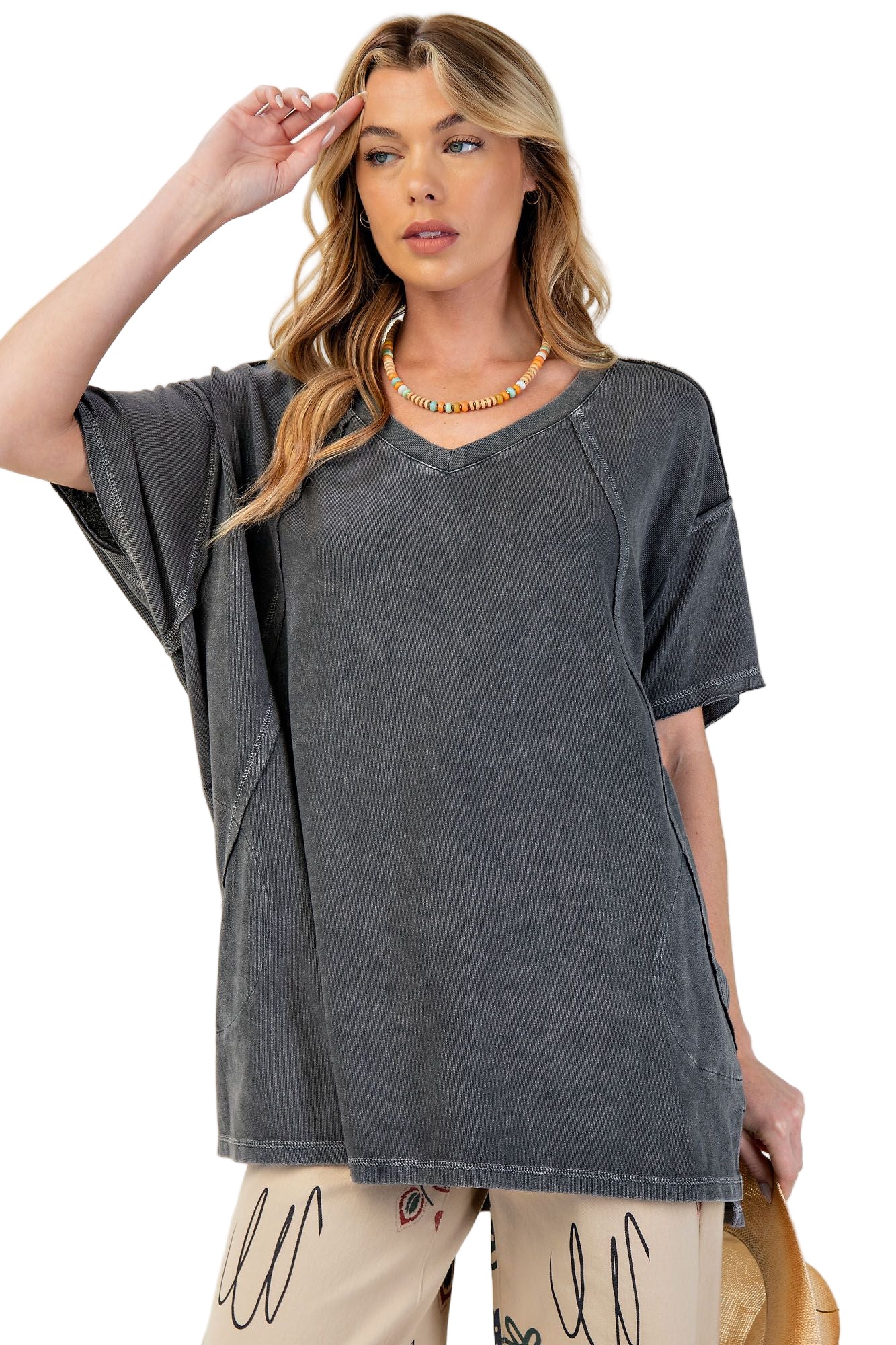 Embrace effortless style with the Fondest Of Memories Top. Featuring a flattering v-neck and breezy short sleeves, this boho-inspired piece is detailed with eye-catching contrast stitching for a unique touch. Perfect for warm days, it combines comfort and charm to elevate your casual wardrobe.