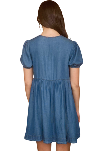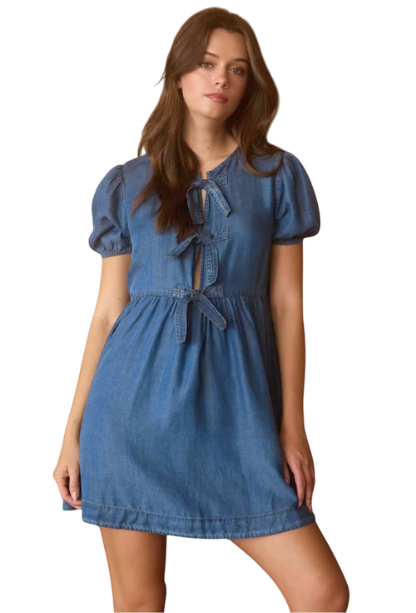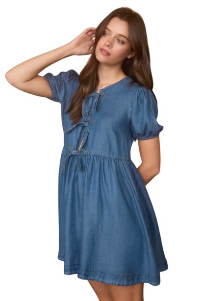 Embrace fall with the Don't Play Games Dress, crafted in soft chambray for comfortable, breathable wear. Its delicate tie details add a flattering, feminine touch that effortlessly elevates your seasonal wardrobe. Perfect for layering or wearing alone, this dress combines casual charm with subtle sophistication, making it your go-to piece for cooler days.
