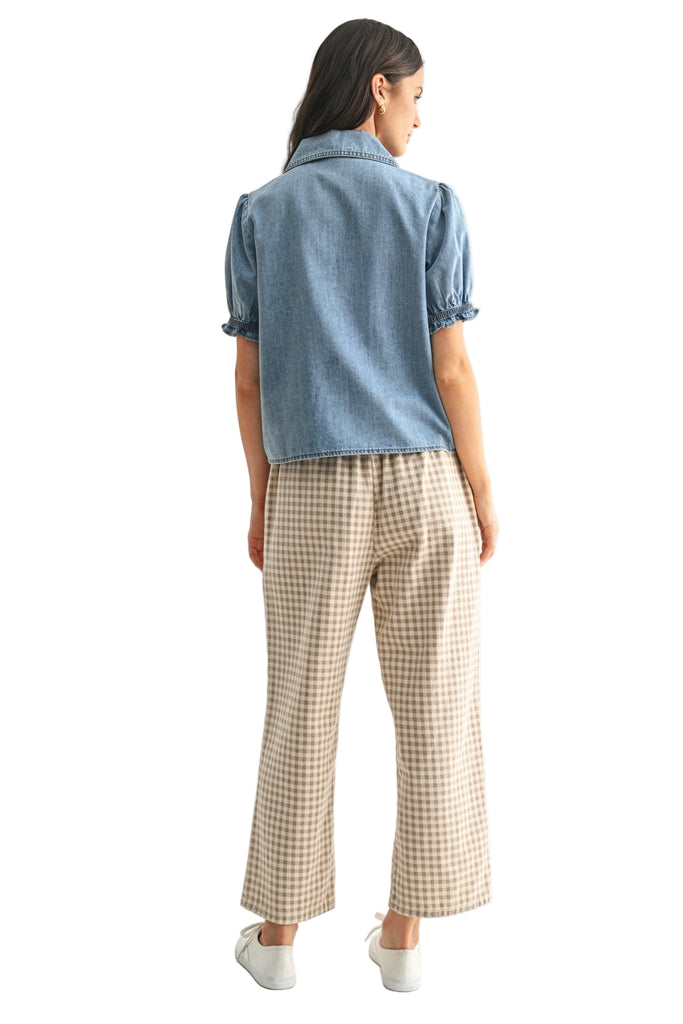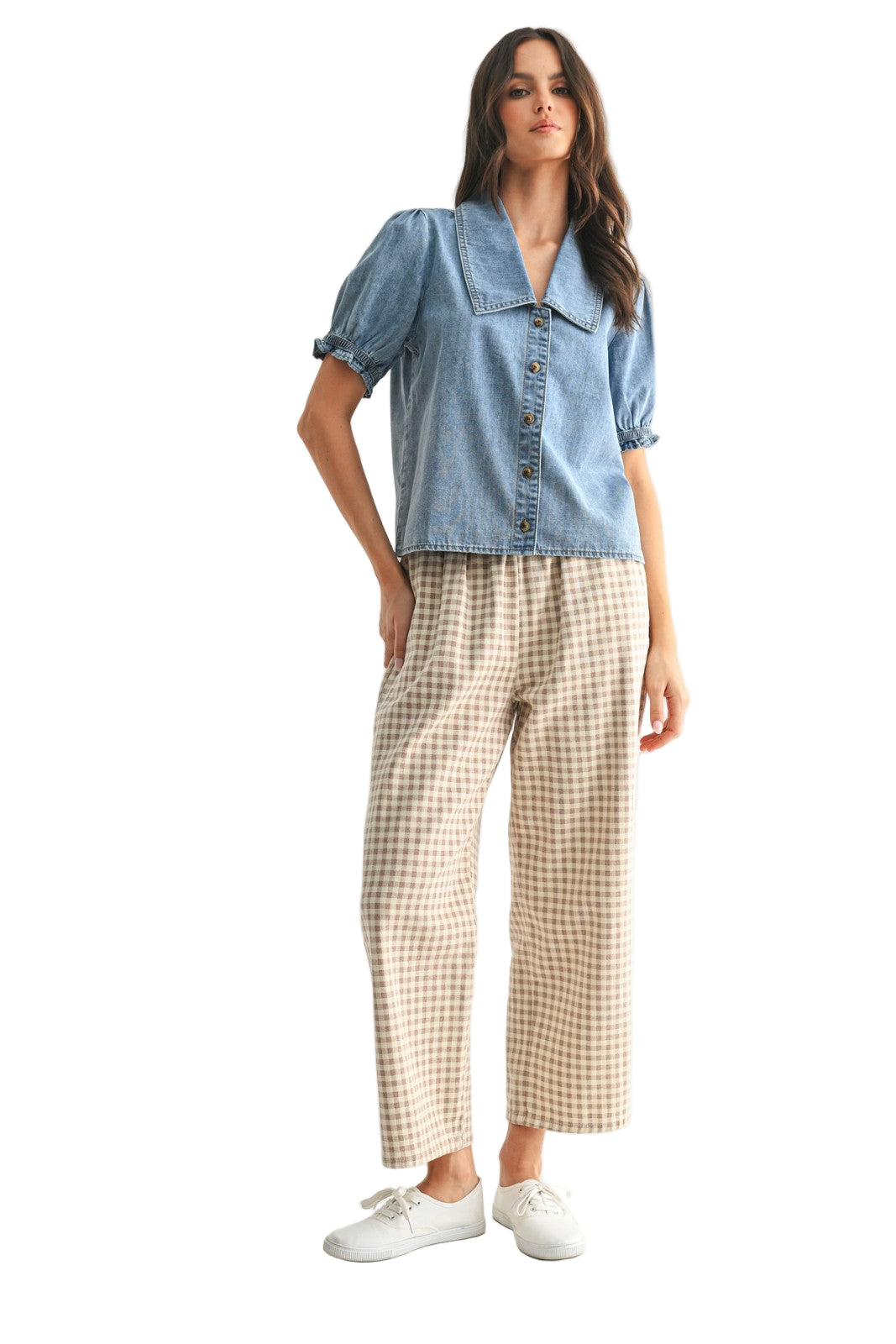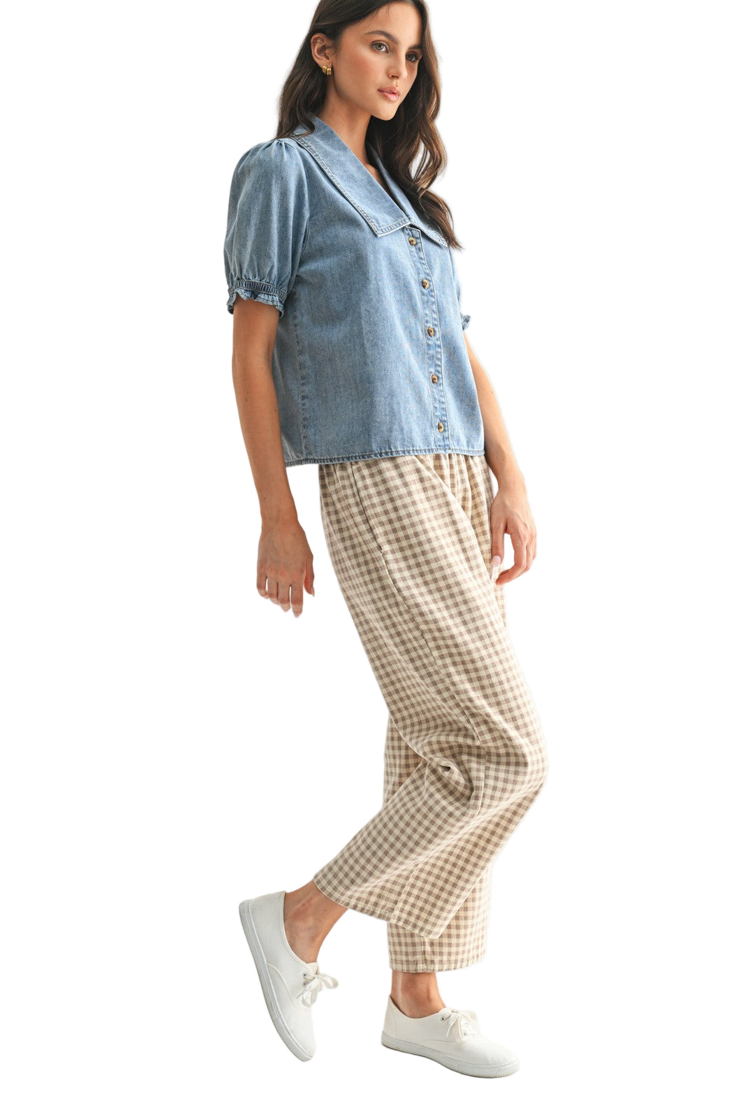 Elevate your wardrobe with the Graceful Moments Top, featuring a chic collar and stylish puff sleeves that add a touch of sophistication. Crafted from durable denim, this top blends classic comfort with modern flair, making it perfect for both casual outings and dressier occasions. Enjoy a flattering fit that enhances your silhouette while embracing timeless style.