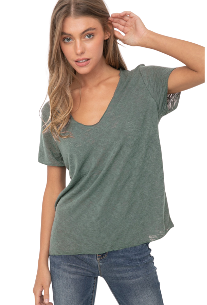Experience effortless style and all-day comfort with our My Go To Tee! Featuring a flattering v-neck, short sleeves, and lightweight fabric, it's the perfect wardrobe staple for any occasion. Elevate your look and feel amazing in our must-have tee!