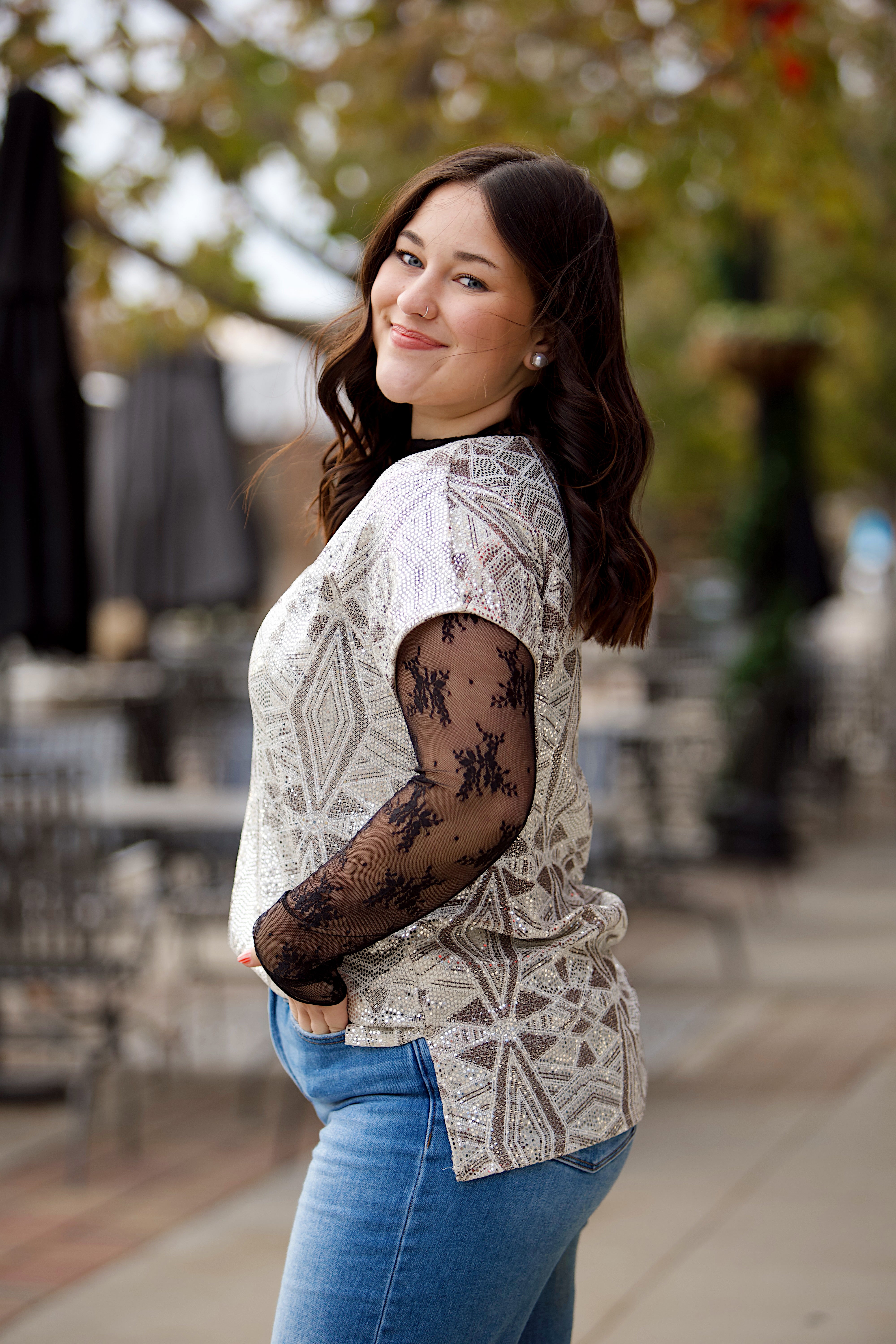 Elevate your evening look with this stunning sequin top that catches every light in the room. The flattering v-neck and cap sleeves create a sophisticated silhouette perfect for special occasions or nights out. Shimmering sequins add glamorous dimension and movement with every step, ensuring you'll turn heads wherever you go. Whether you're celebrating a milestone or simply want to feel fabulous, this versatile piece transforms any outfit into something truly memorable.