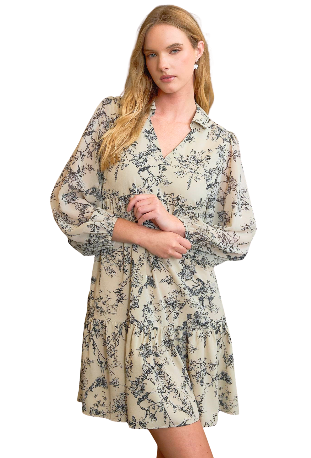 Elevate your everyday wardrobe with the Thanks To You Dress, a timeless piece that combines elegance with comfort. This charming dress features a flattering v-neck and collared design, paired with flowing long sleeves that add sophistication to any occasion. The delicate floral pattern brings a fresh, feminine touch that transitions seamlessly from office to weekend gatherings. Perfect for those who appreciate classic style with modern appeal, this dress is your go-to choice for looking polished and put-together all day long.
