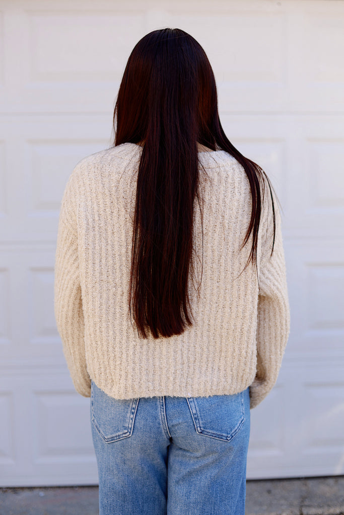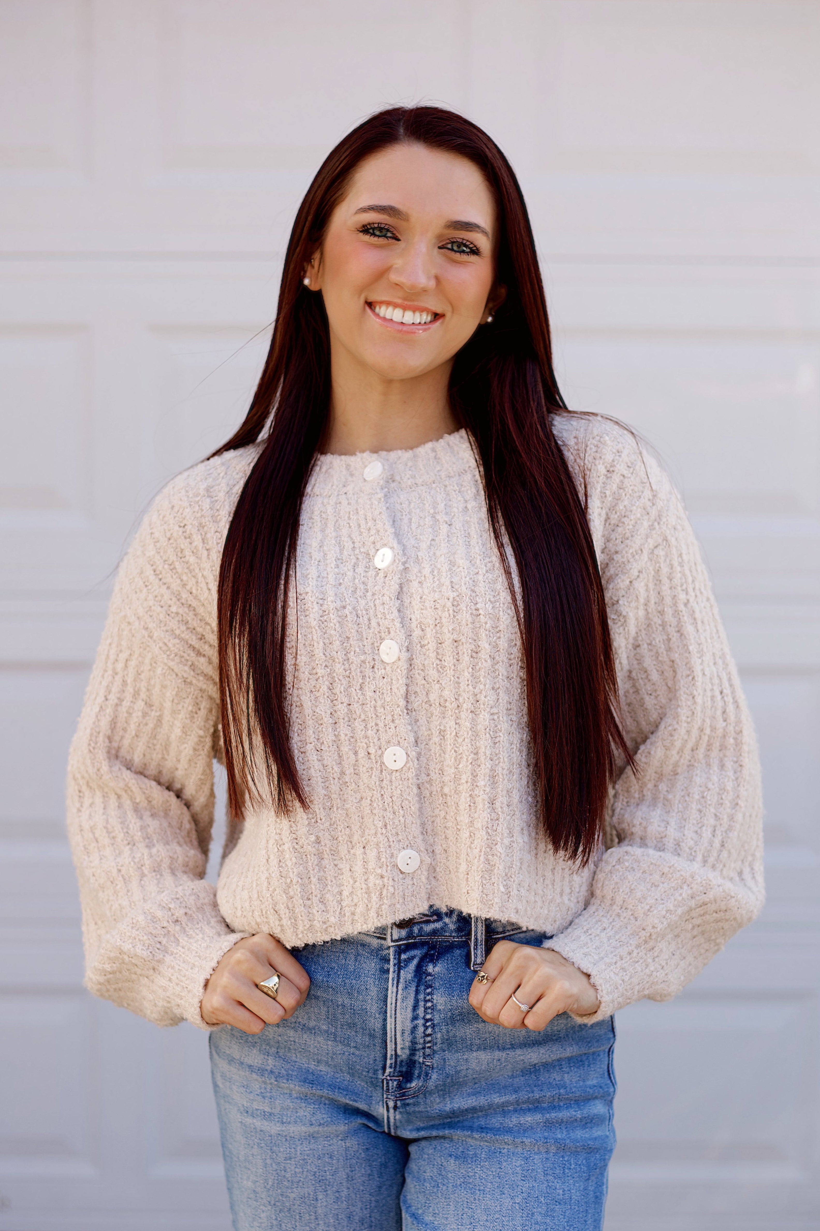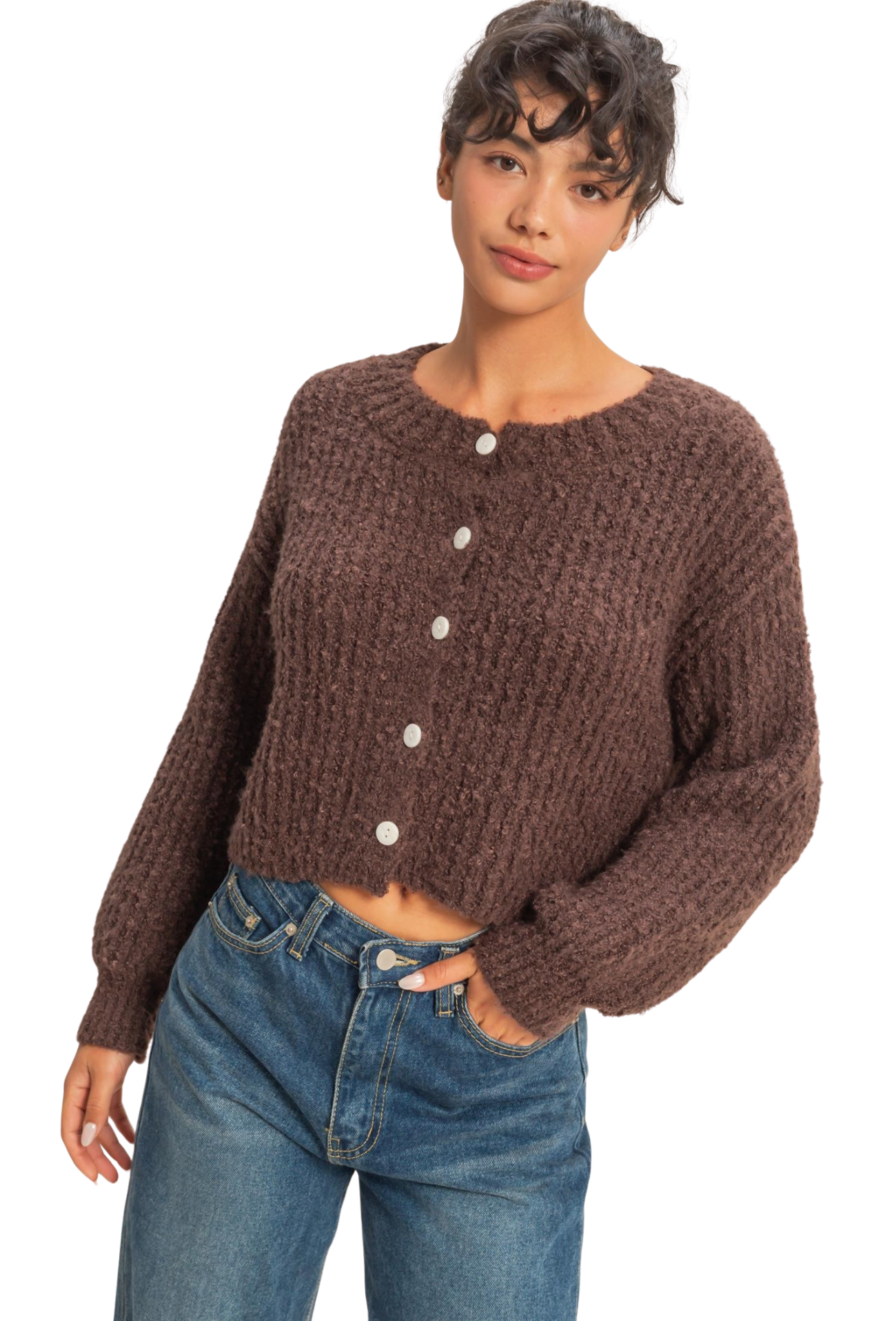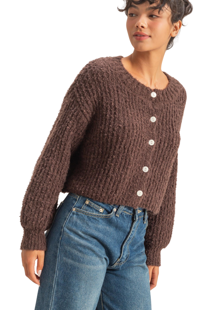 This cozy cardigan features a classic button closure and is crafted from soft wool look to keep you warm on chilly days. Its timeless design makes it a versatile layering piece that offers comfort and style, perfect for adding a touch of warmth to any outfit.