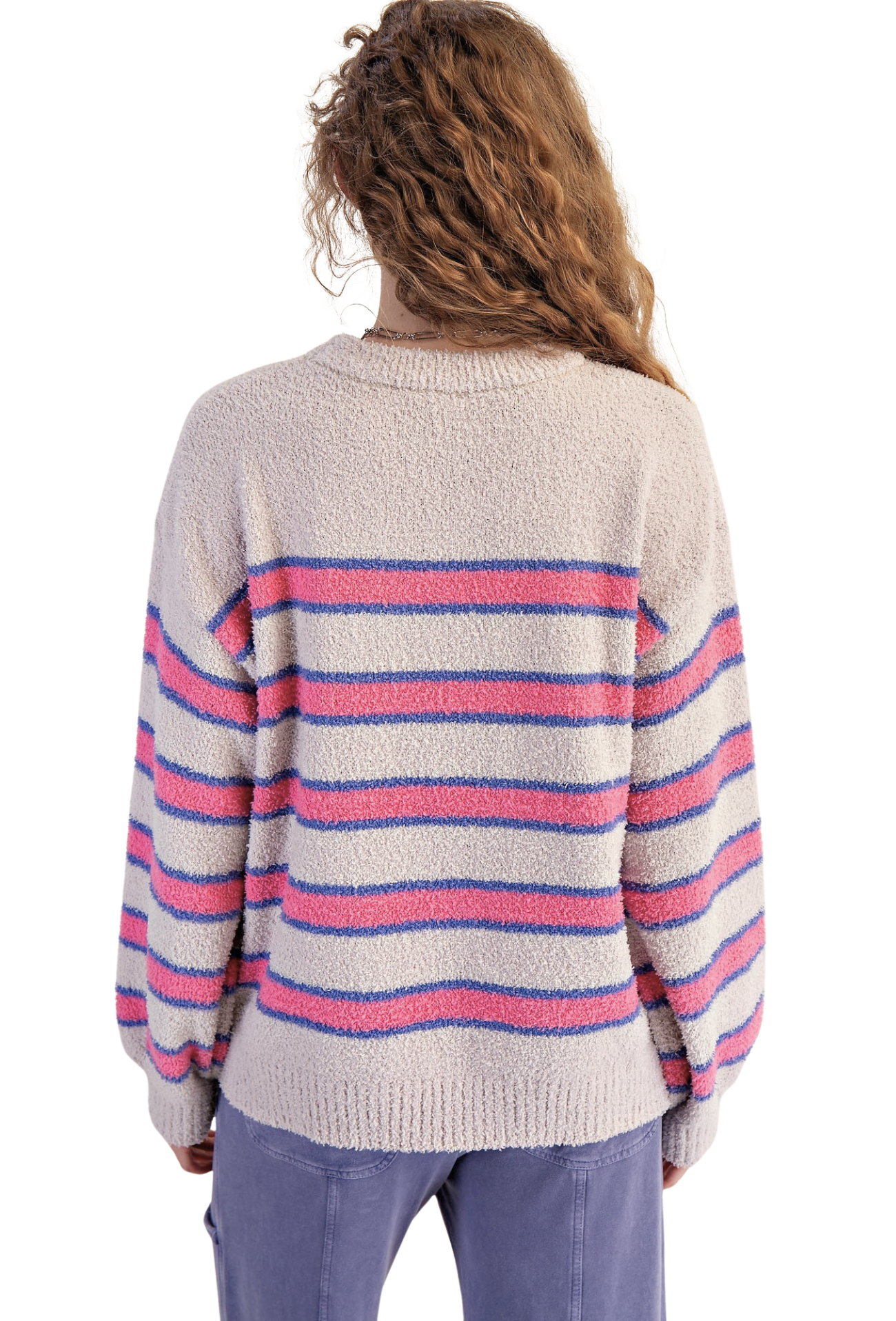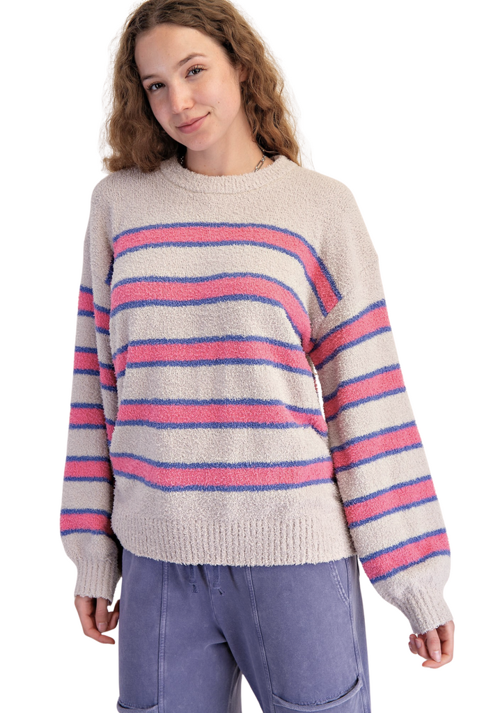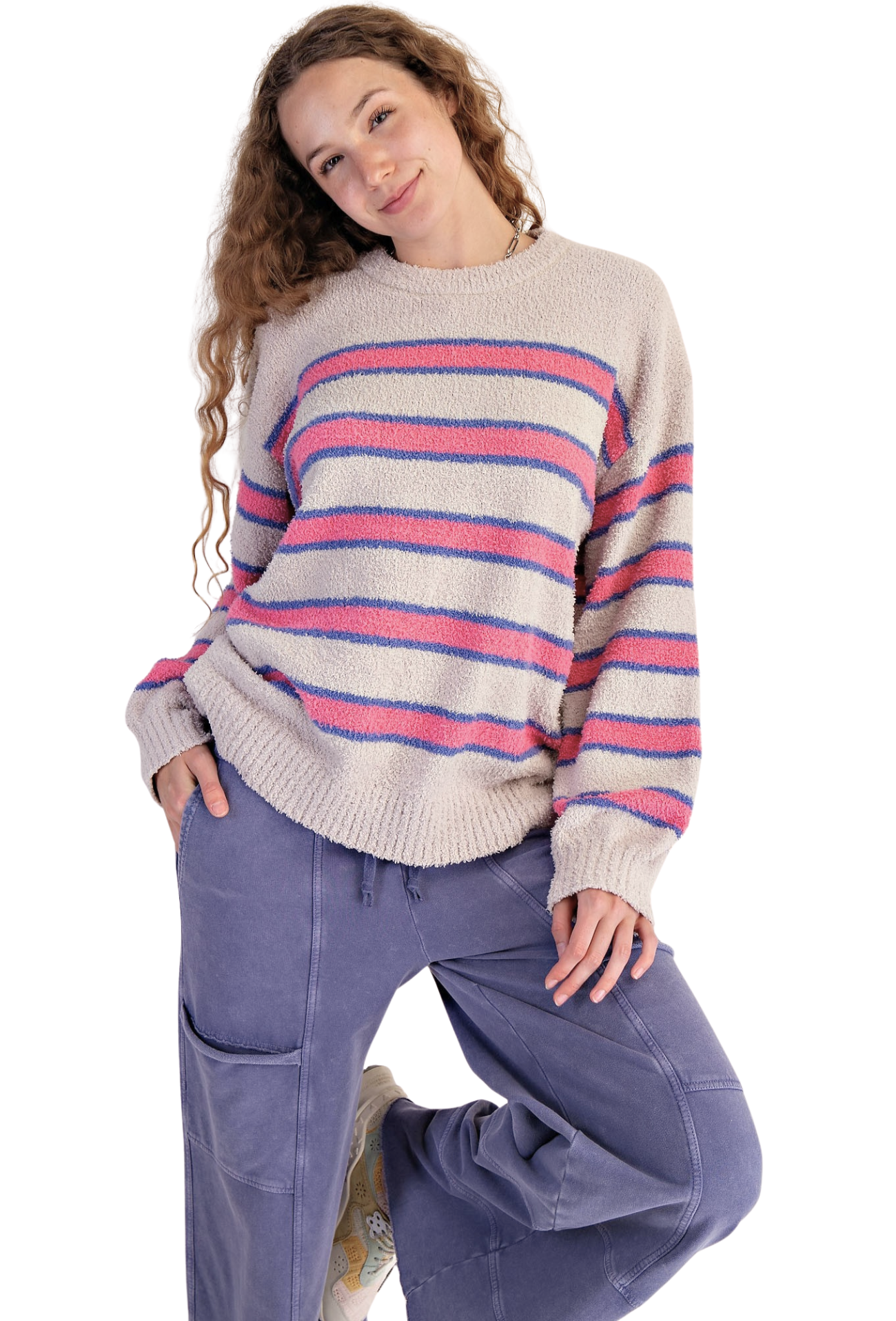 Experience cozy comfort with the Loving Life Sweater, crafted from ultra-soft fabric that feels gentle against your skin. Its classic striped design adds a timeless touch perfect for crisp fall days. This sweater effortlessly combines warmth and style, making it your go-to layering piece as the seasons change. Stay snug and stylish all autumn long.