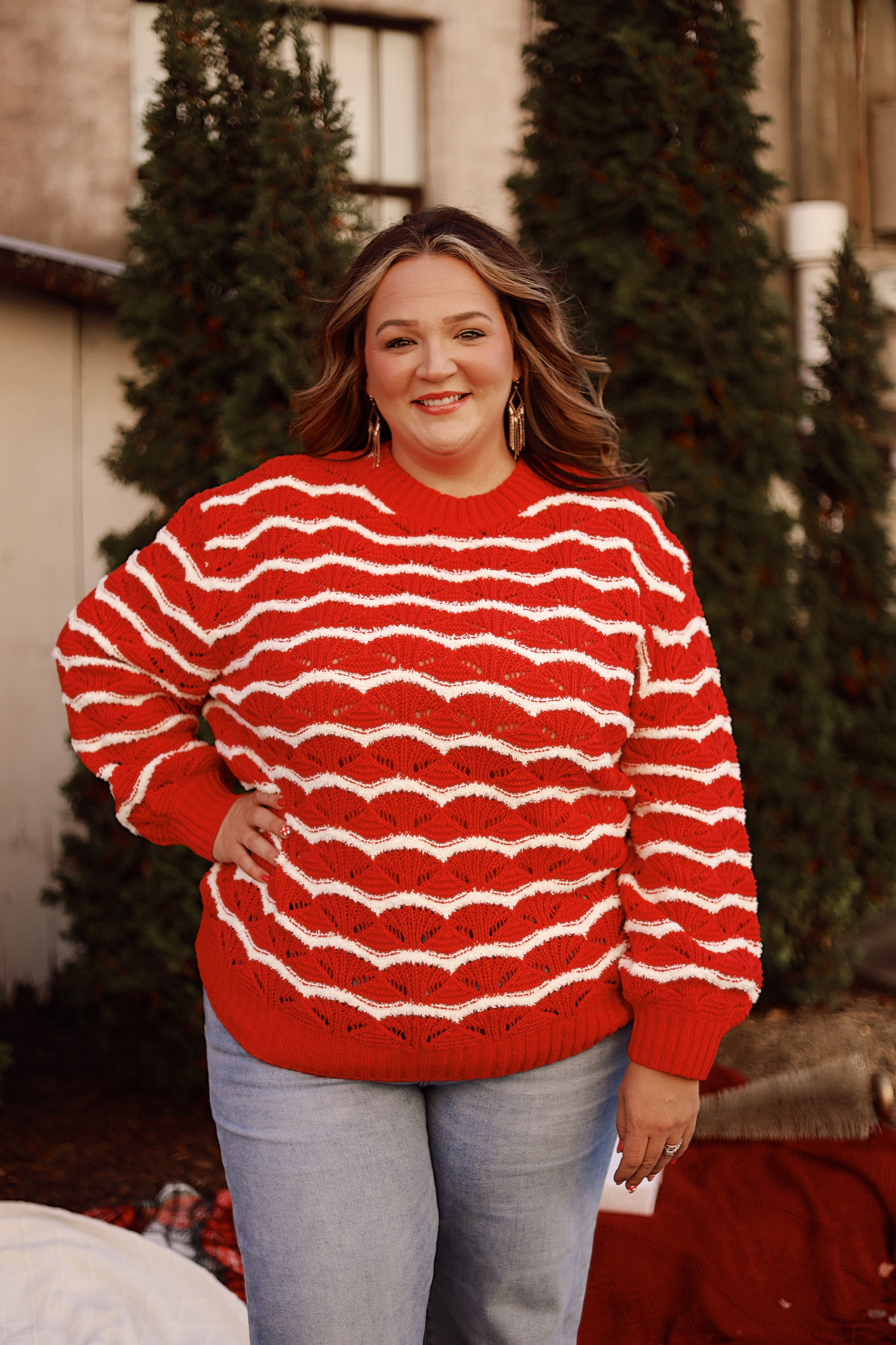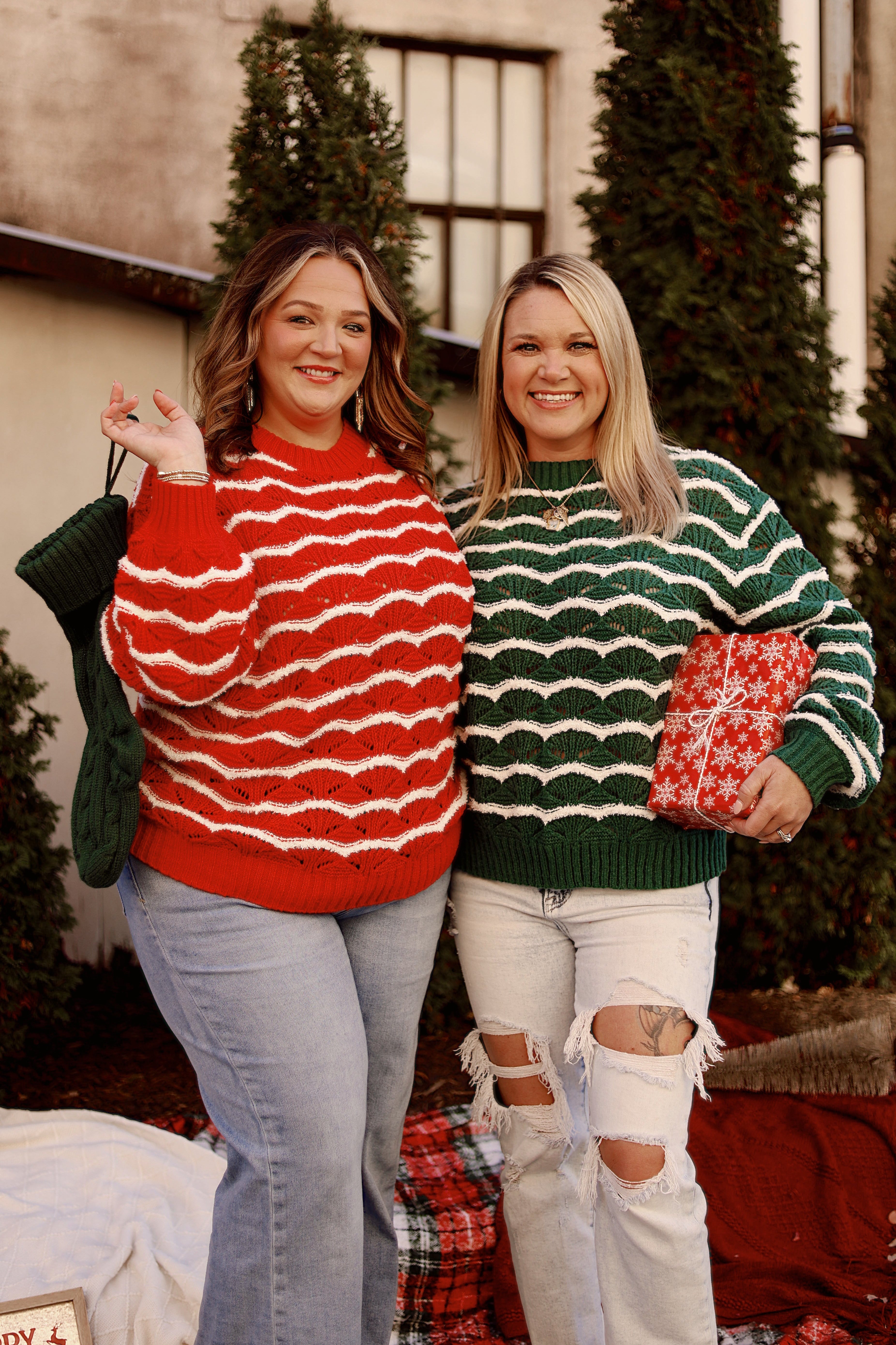 Celebrate the season in style with the On My Merry Way Sweater, a charming knit that brings festive cheer to your holiday wardrobe. Featuring playful stripes and an undeniably cute design, this cozy piece is perfect for spreading joy at seasonal gatherings, casual outings, or cozy nights in. The soft knit keeps you comfortable while the cheerful pattern adds personality to any outfit. This sweater is your go-to choice for looking effortlessly festive and feeling wonderfully warm.