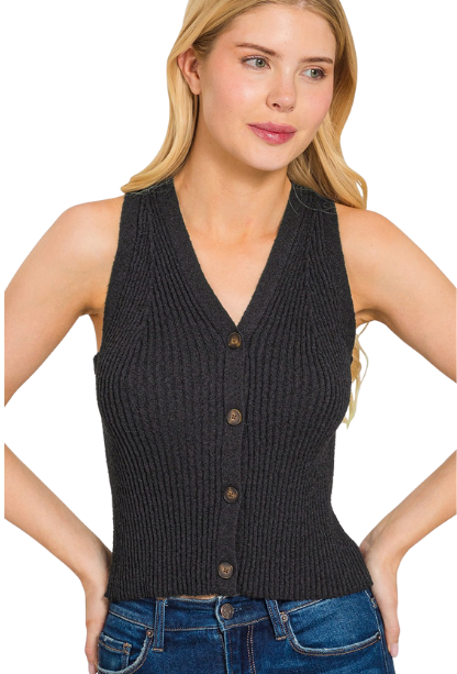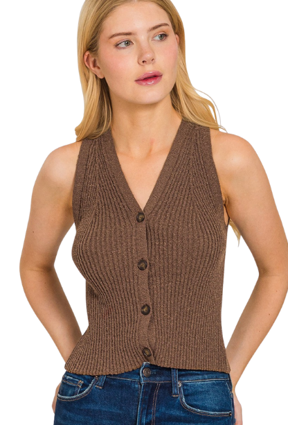 This Time To Settle Down Sweater Vest combines comfort and style with its stretchy fabric and convenient button-front design. Perfect for layering, it effortlessly enhances any outfit while providing a flattering fit that moves with you. Make it a versatile staple in your wardrobe for both cozy and polished looks.