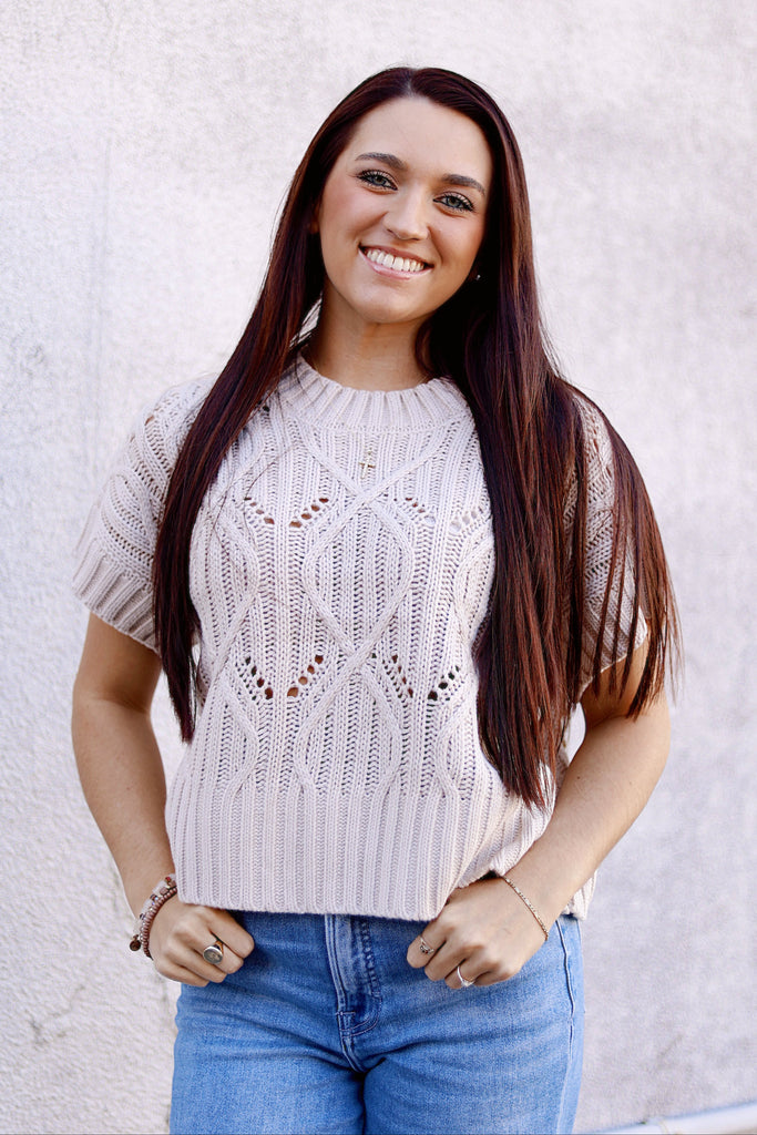 Stay cozy and stylish with the Wish You Were Mine Short Sleeve Sweater. Featuring a soft knit look, this warm sweater is perfect for layering on chilly days. Its versatile design pairs effortlessly with any outfit, making it an essential piece for your fall and winter wardrobe. Embrace comfort without sacrificing style.