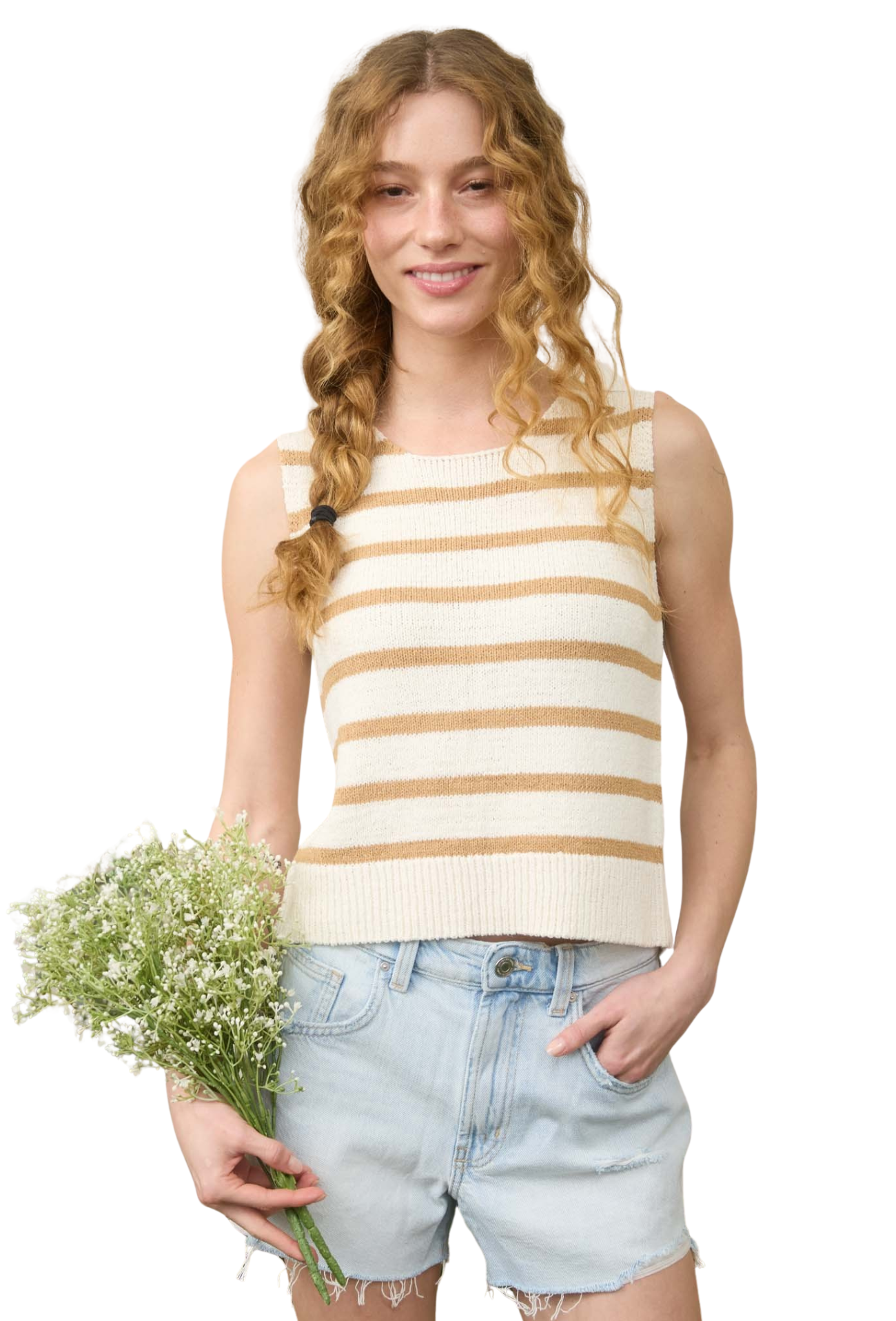 Elevate your spring wardrobe with this versatile knit tank that effortlessly transitions from casual to polished. Crafted from soft, breathable knit fabric, it features charming striped detailing and distinctive back tie details that add dimension and visual interest. The relaxed fit ensures all-day comfort while the thoughtful design elements make it a standout piece you'll reach for again and again. Perfect for layering or wearing solo, this tank is the foundation piece every spring closet needs!
