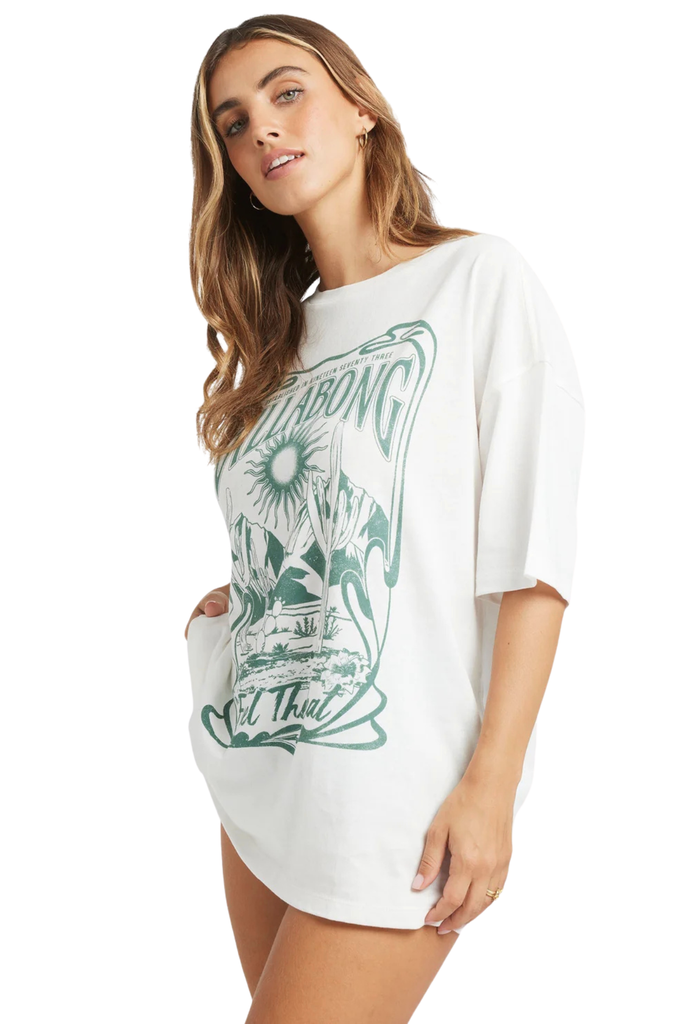 Experience effortless style with the Billabong Desert Wandering Tee. Its loose fit ensures all-day comfort, while the bold graphic design adds a touch of adventure to any outfit. Perfect for layering, this tee adapts seamlessly from cool mornings to warm afternoons, making it a versatile addition to your wardrobe. Embrace a laid-back vibe without sacrificing style.