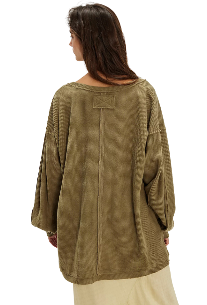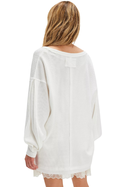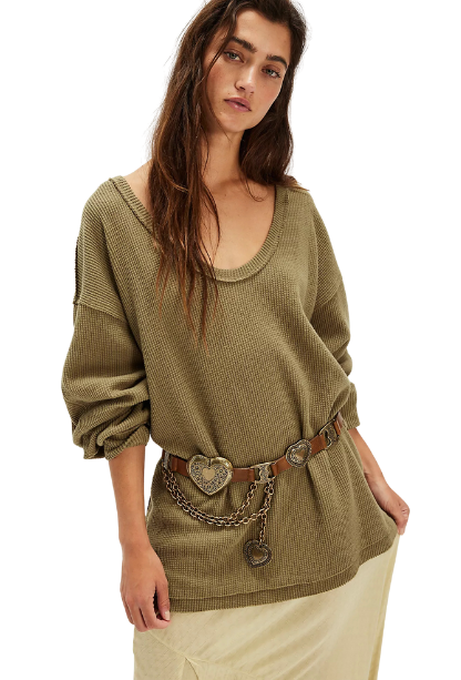 Stay cozy and stylish this fall with the Free People Coast 2 Coast Thermal Top. Featuring a flattering scoop neck and soft waffle knit fabric, this oversized fit piece is perfect for layering or wearing on its own. Its relaxed silhouette ensures comfort without sacrificing on trend, making it an essential addition to your seasonal wardrobe.