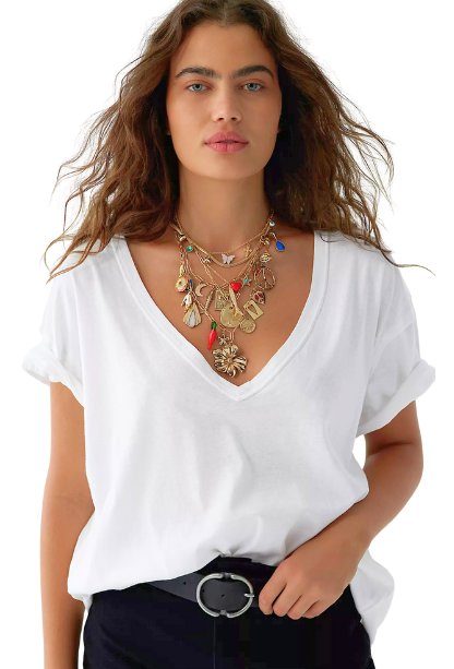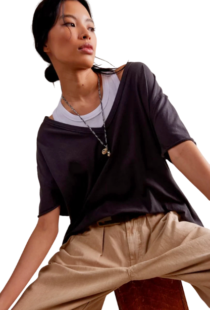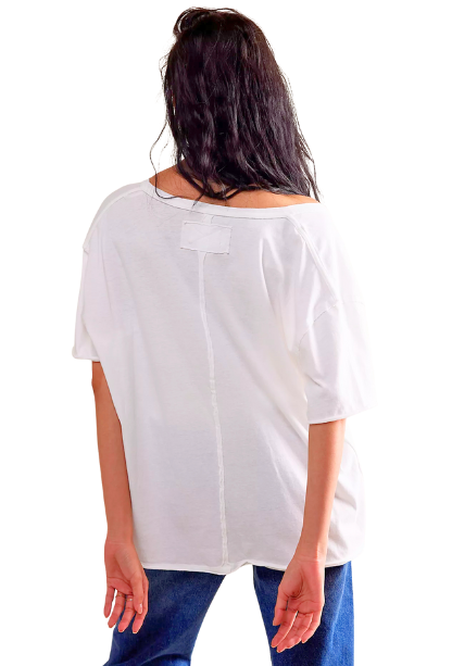 Indulge in effortless comfort and style with the Free People Nina V-Neck Tee! Crafted with a flattering v-neck and flirty short sleeves, this oversized tee is perfect for any occasion. Embrace a feeling of lightness and ease as you rock this must-have wardrobe staple.
