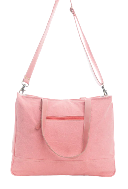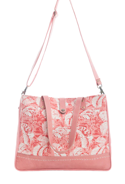 This alluring bag presents enchanting pink and reds in a beautifully balanced design. A scene of serene foliage is embraced by sunrise pink leather, expertly stitched to perfection. The sides are a pink woven canvas and the detachable, adjustable shoulder strap is in matching leather. A delightful bag you'll love having in your collection!