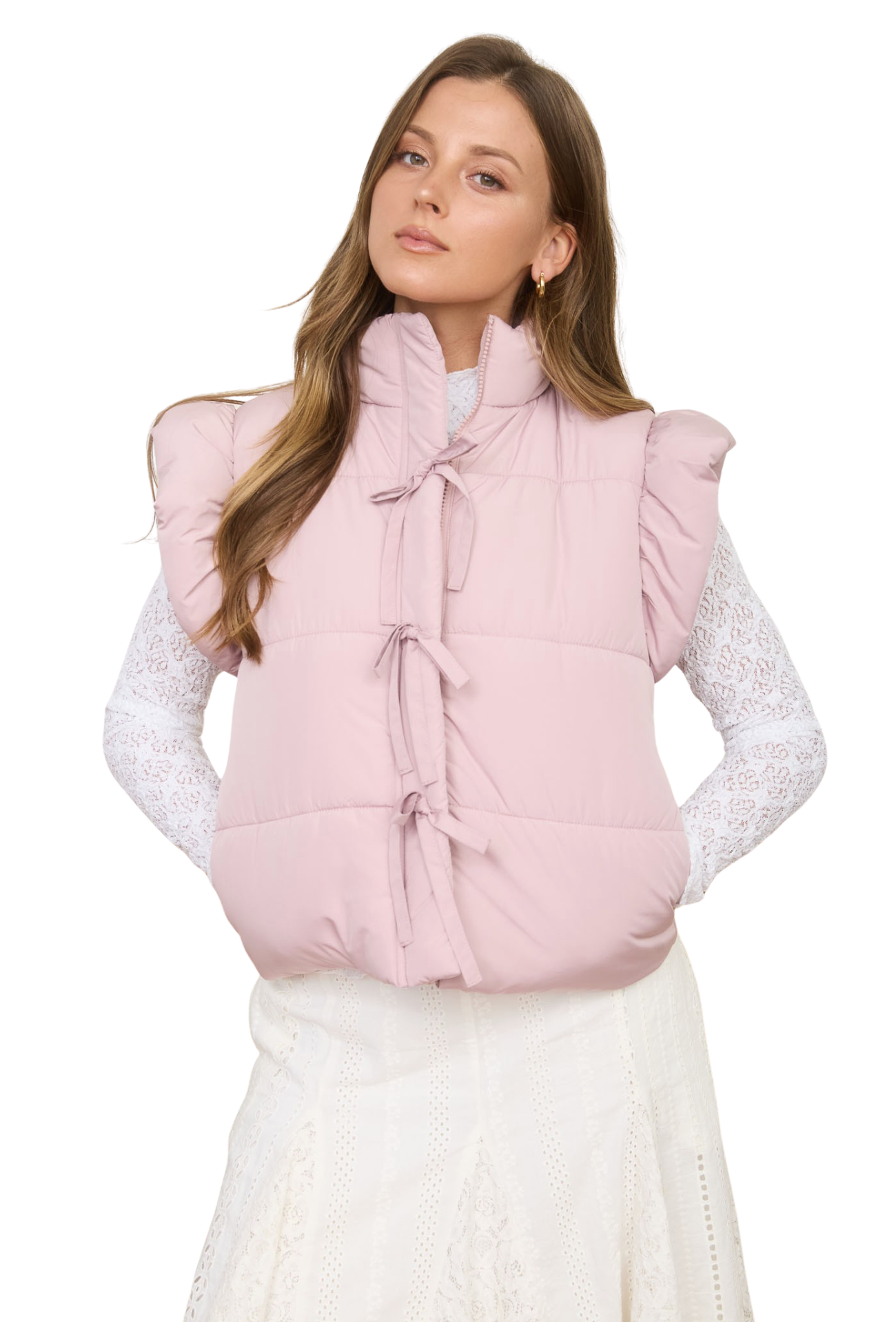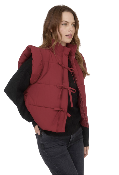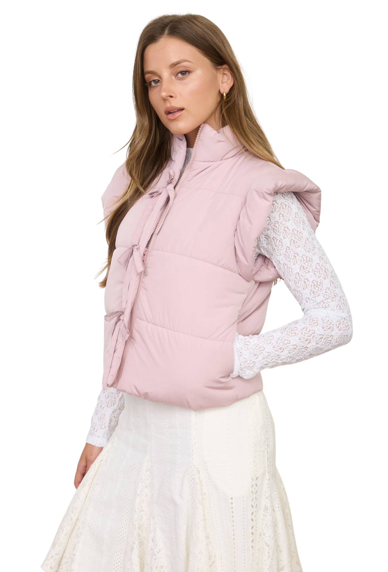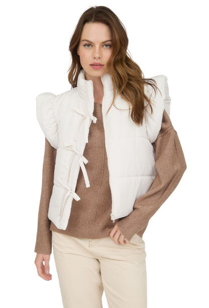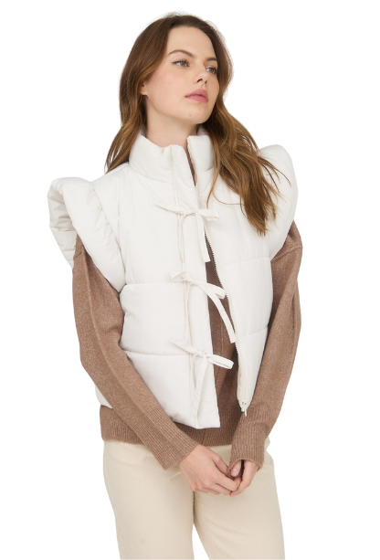 Stay cozy this fall with the Next Thing You Know Puffer Vest, designed to keep you warm without sacrificing style. Featuring charming bows on the front, this vest adds a feminine touch to your layering essentials. Its lightweight insulation provides just the right amount of warmth for crisp autumn days, making it a perfect choice for outdoor walks or casual outings. Embrace the season confidently and comfortably with this versatile, must-have piece.