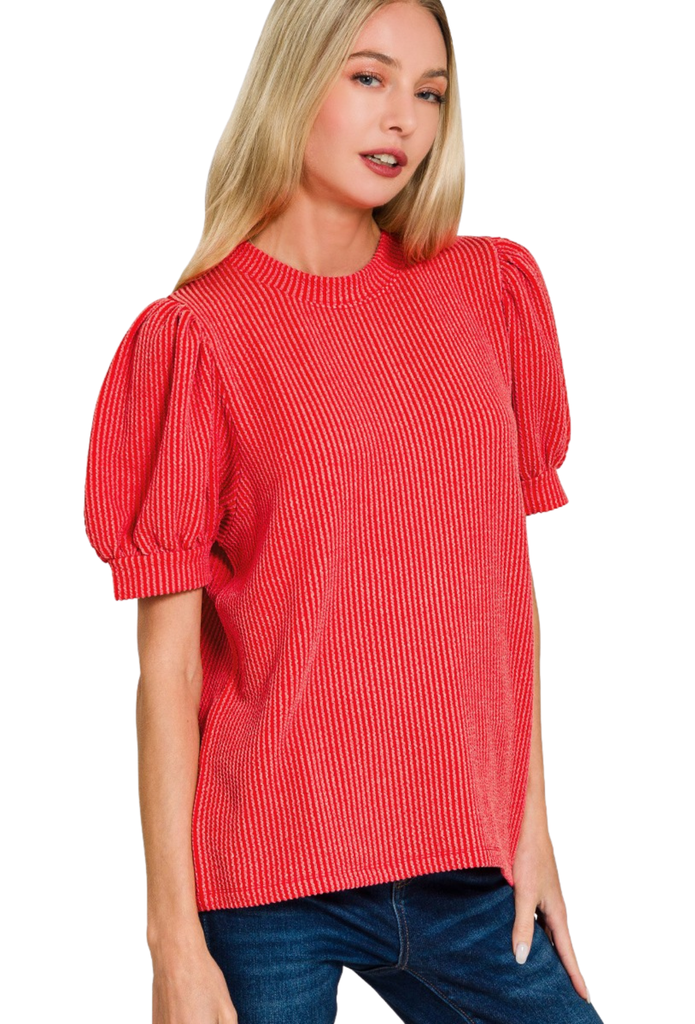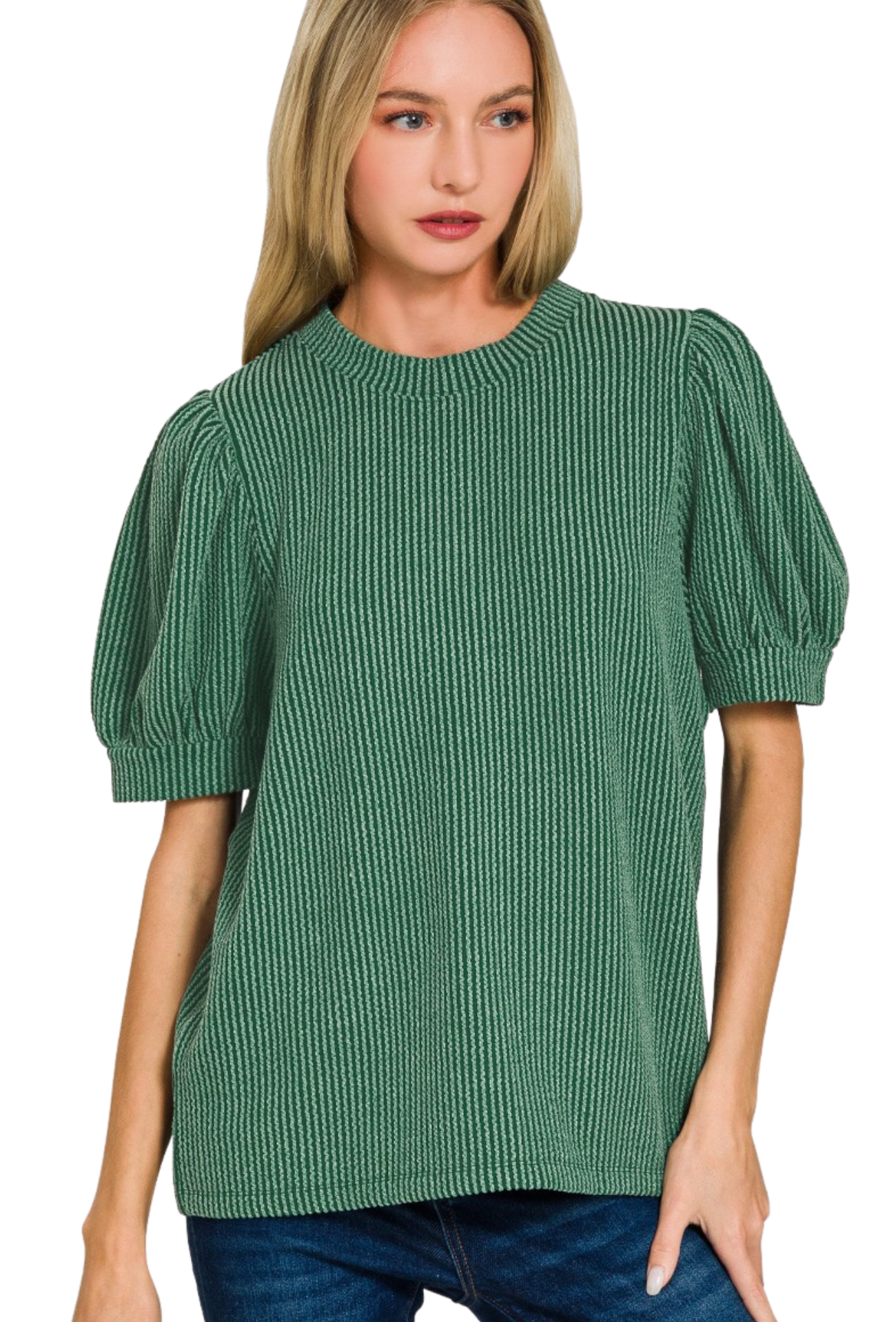 Elevate your everyday wardrobe with the Always A Good Time Top, designed for effortless style and comfort. This charming piece features ribbed detailing that creates a flattering, structured silhouette while puff short sleeves add a playful, on-trend touch. The combination of classic ribbed texture and contemporary sleeve design makes this top versatile enough for casual outings or dressed-up occasions. Make every moment feel special with a top that delivers style.
