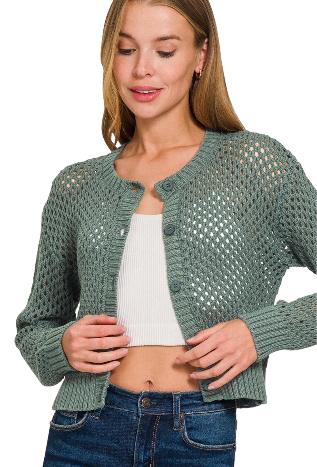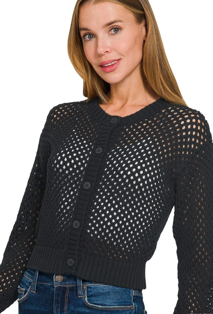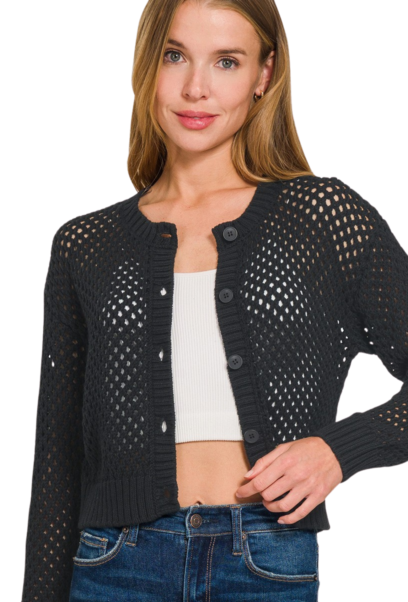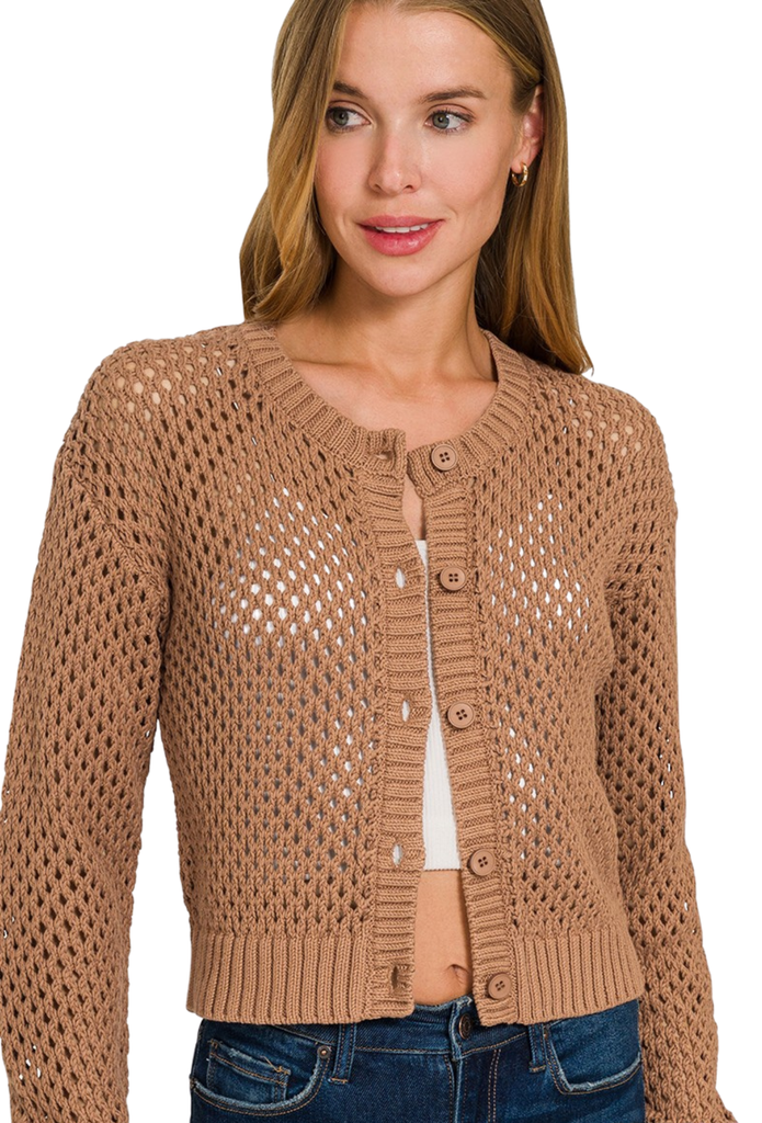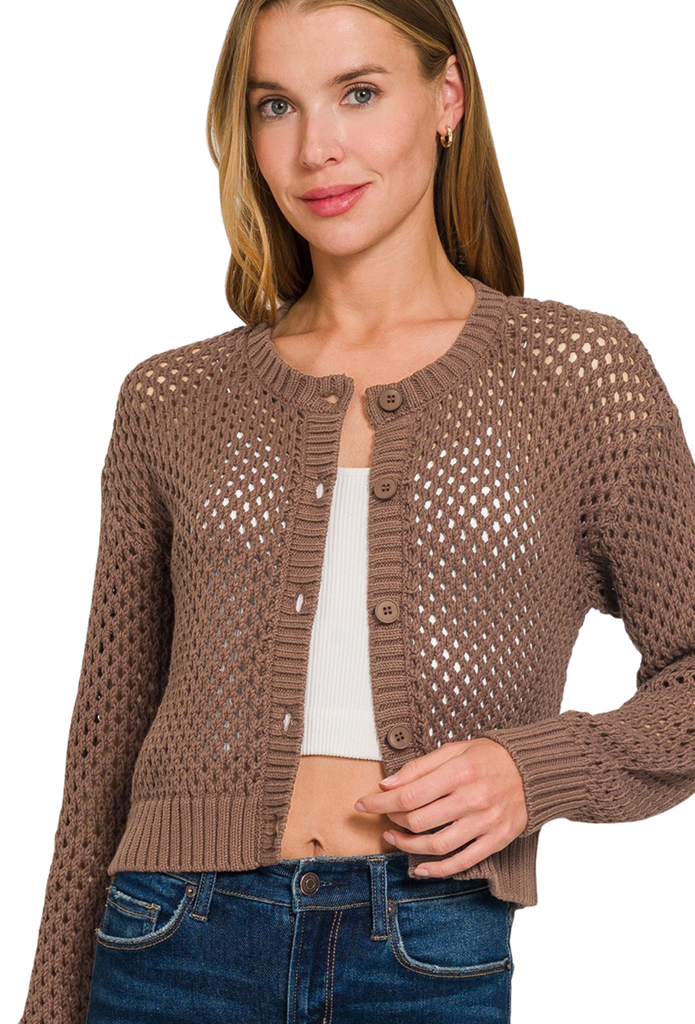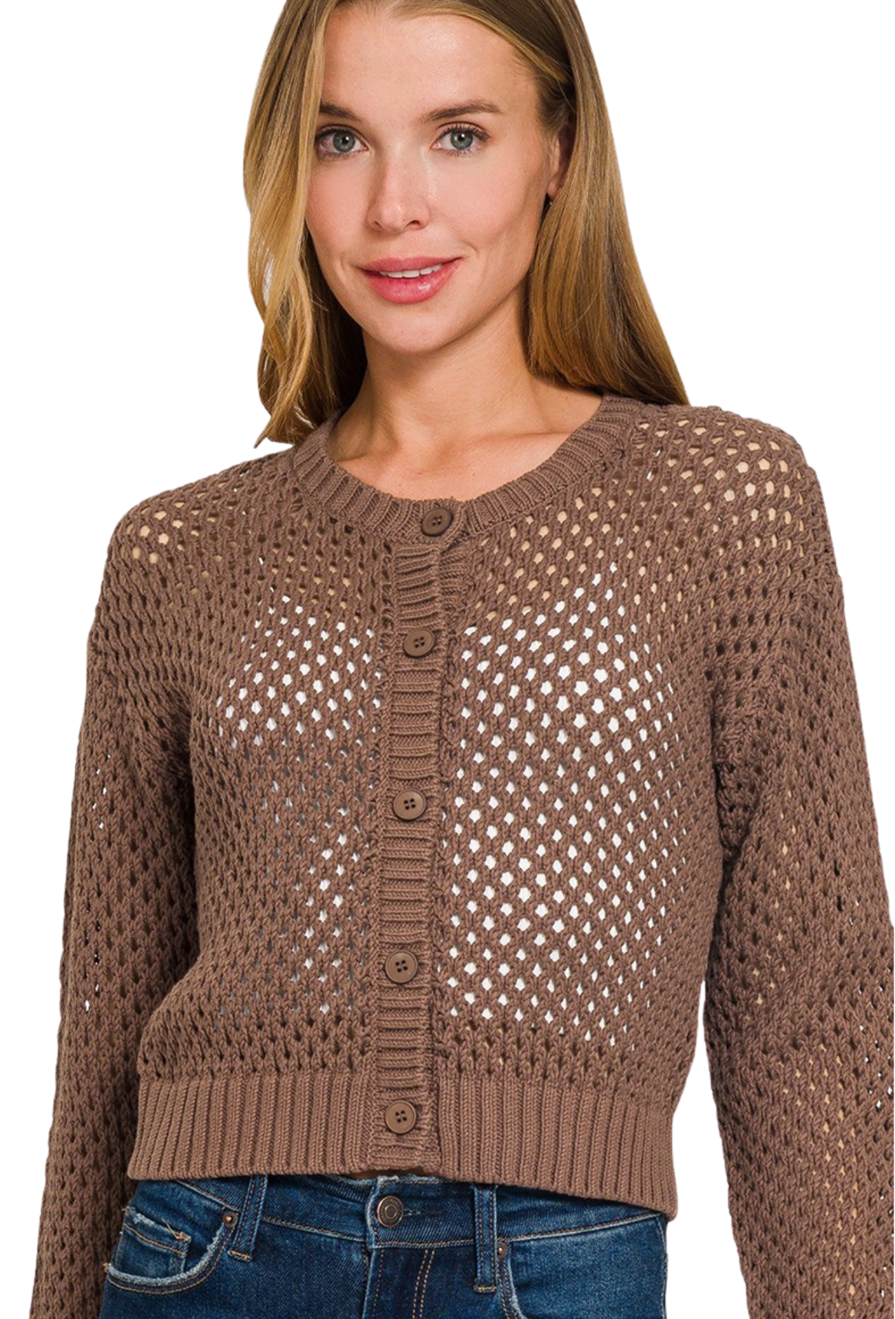 The Make Up Your Mind Top is the perfect crochet piece for cozy fall days. Featuring a buttoned front, it combines easy wearability with timeless style. Its intricate crochet texture adds warmth and charm, making it a versatile layer that effortlessly elevates any outfit this season. Embrace comfort and classic autumn vibes with this must-have top.