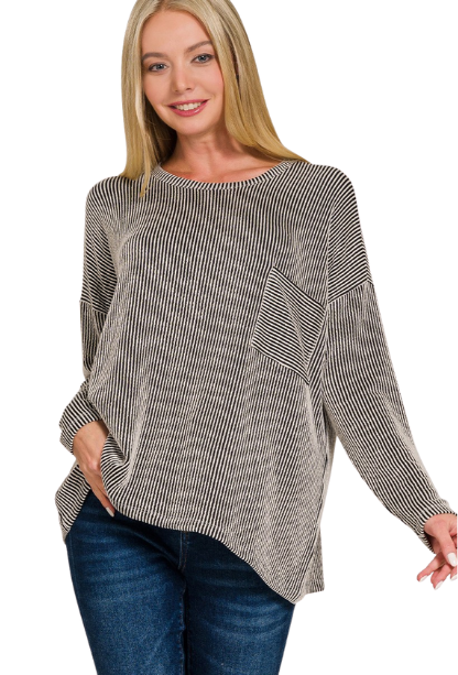 Stay comfortable and stylish in the Say It Ain't So Top, featuring a flattering striped pattern and a convenient chest pocket for added flair. Its stretchy fabric ensures a perfect fit that moves with you, making it ideal for everyday wear or layering. Elevate your wardrobe with this versatile top designed for both comfort and effortless style.