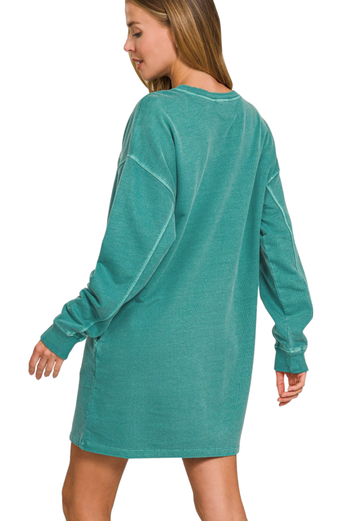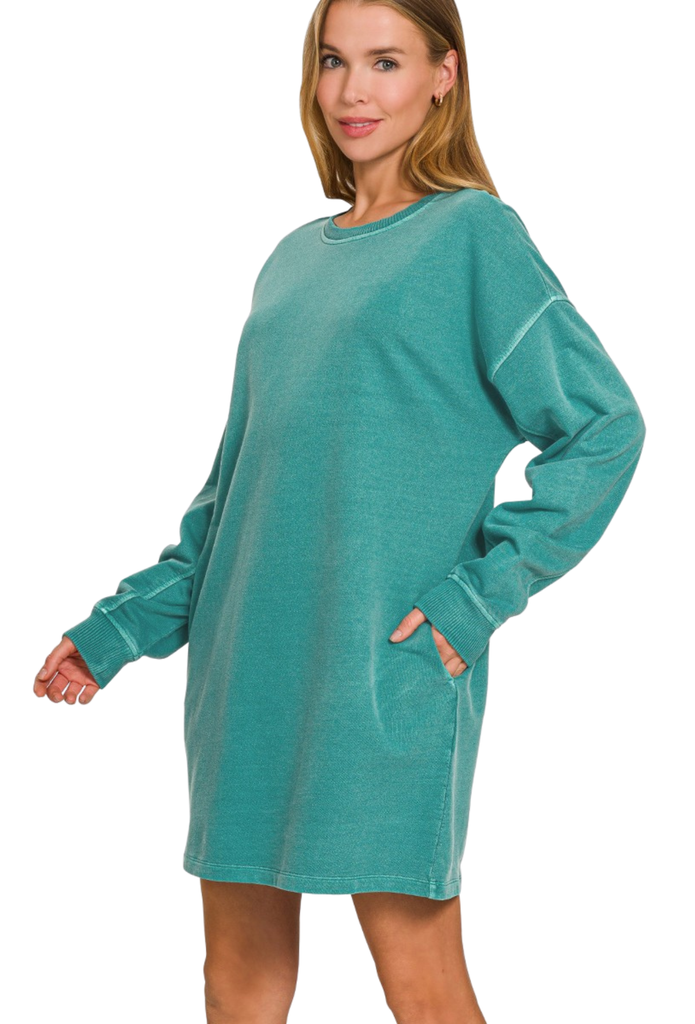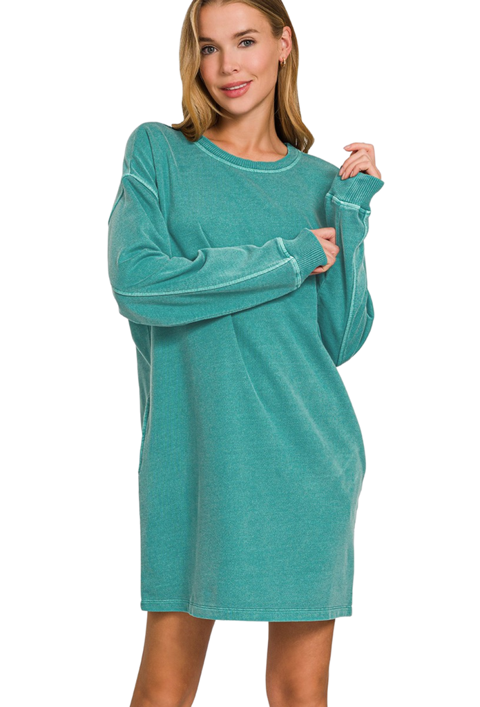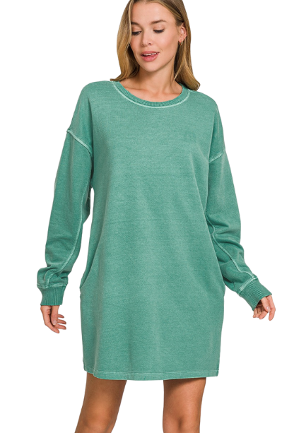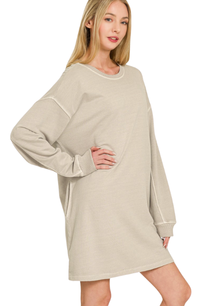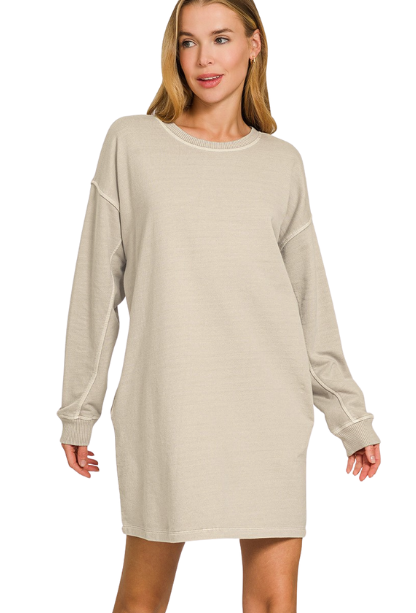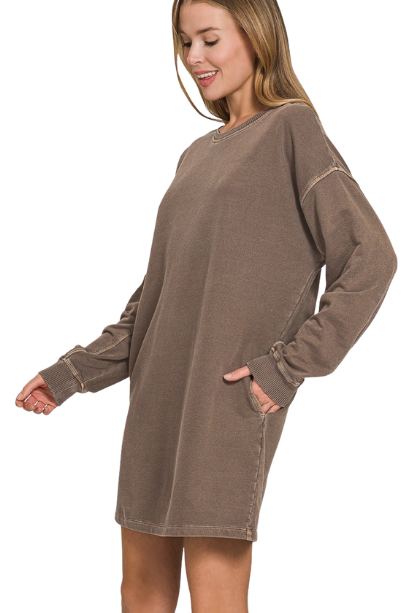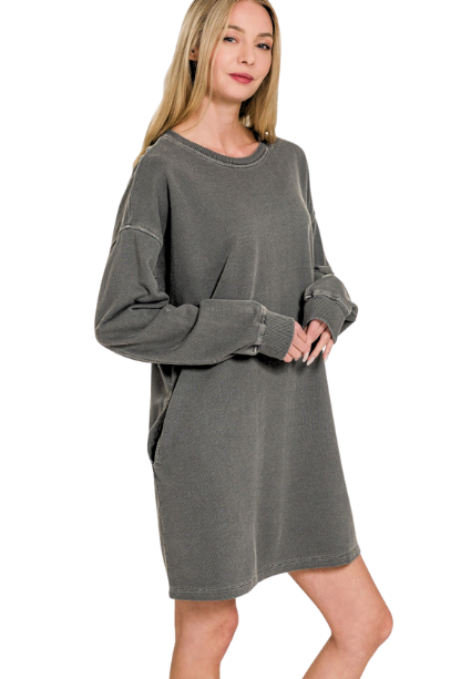 Embrace fall in the Stayin' Cozy Dress, featuring soft sweatshirt fabric and long sleeves for warmth and comfort. Perfect for layering or wearing solo, this dress combines casual ease with a flattering fit to keep you stylish and snug all season. Ideal for cool days, it’s your go-to piece for effortless, cozy chic.