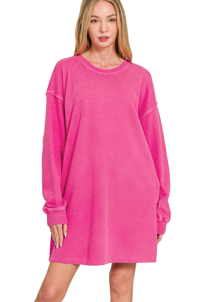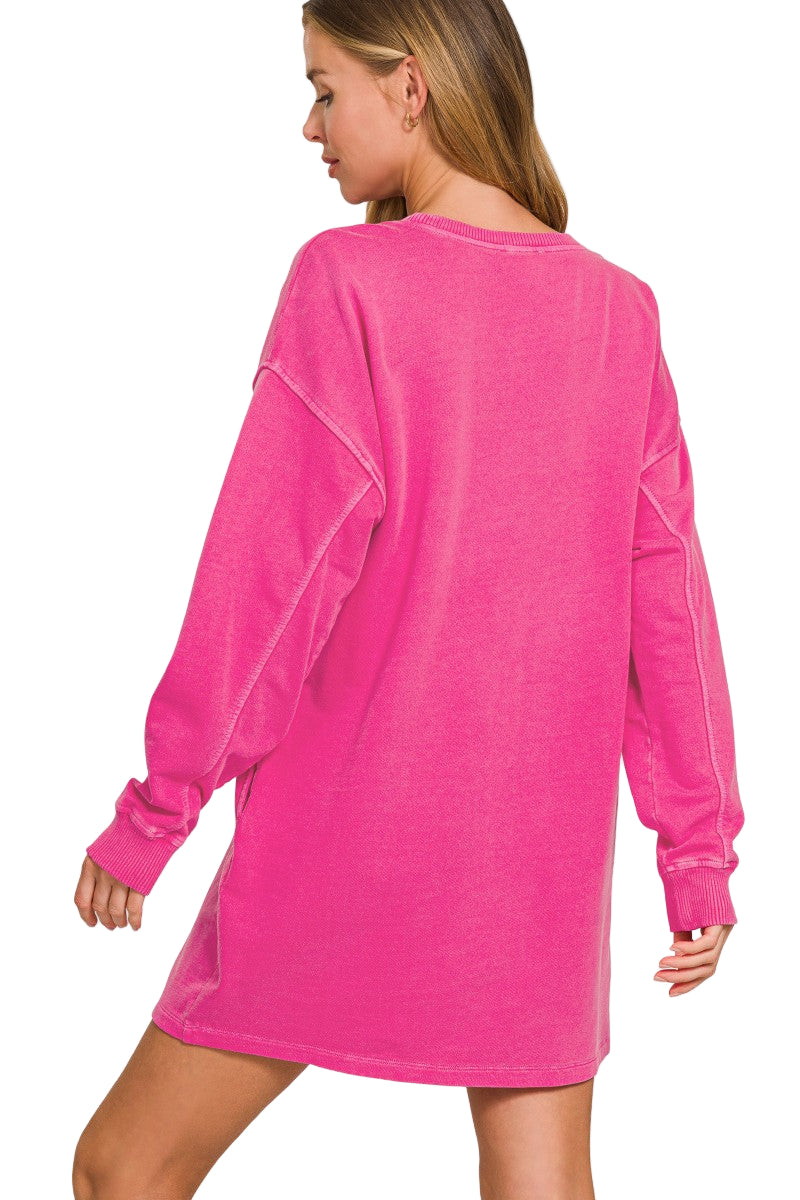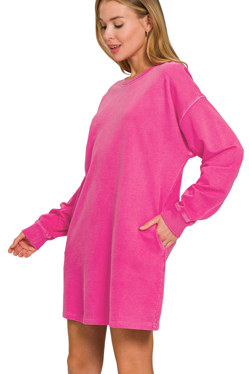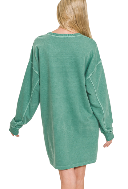 Embrace fall in the Stayin' Cozy Dress, featuring soft sweatshirt fabric and long sleeves for warmth and comfort. Perfect for layering or wearing solo, this dress combines casual ease with a flattering fit to keep you stylish and snug all season. Ideal for cool days, it’s your go-to piece for effortless, cozy chic.