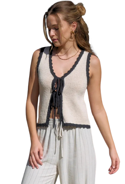 Transform your outfit instantly with our Give It All You've Got knit sweater vest. The tie closure creates a customizable fit that accentuates your best features. Expertly crafted for layering, this versatile piece adds warmth and style without bulk. Unlock countless outfit possibilities with this must-have wardrobe essential you'll reach for again and again.