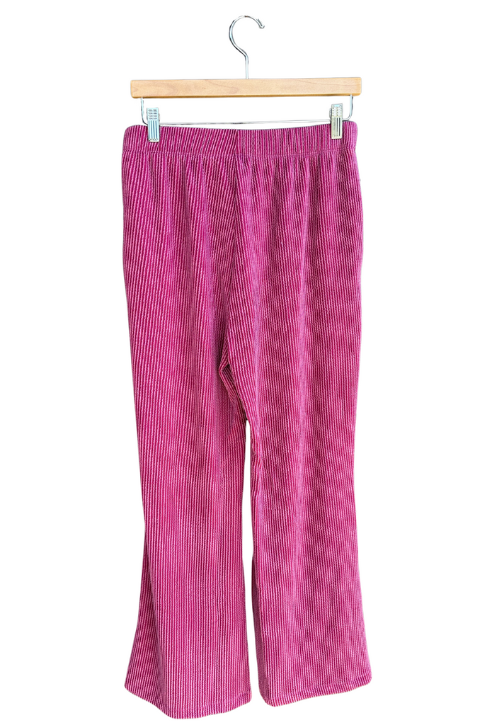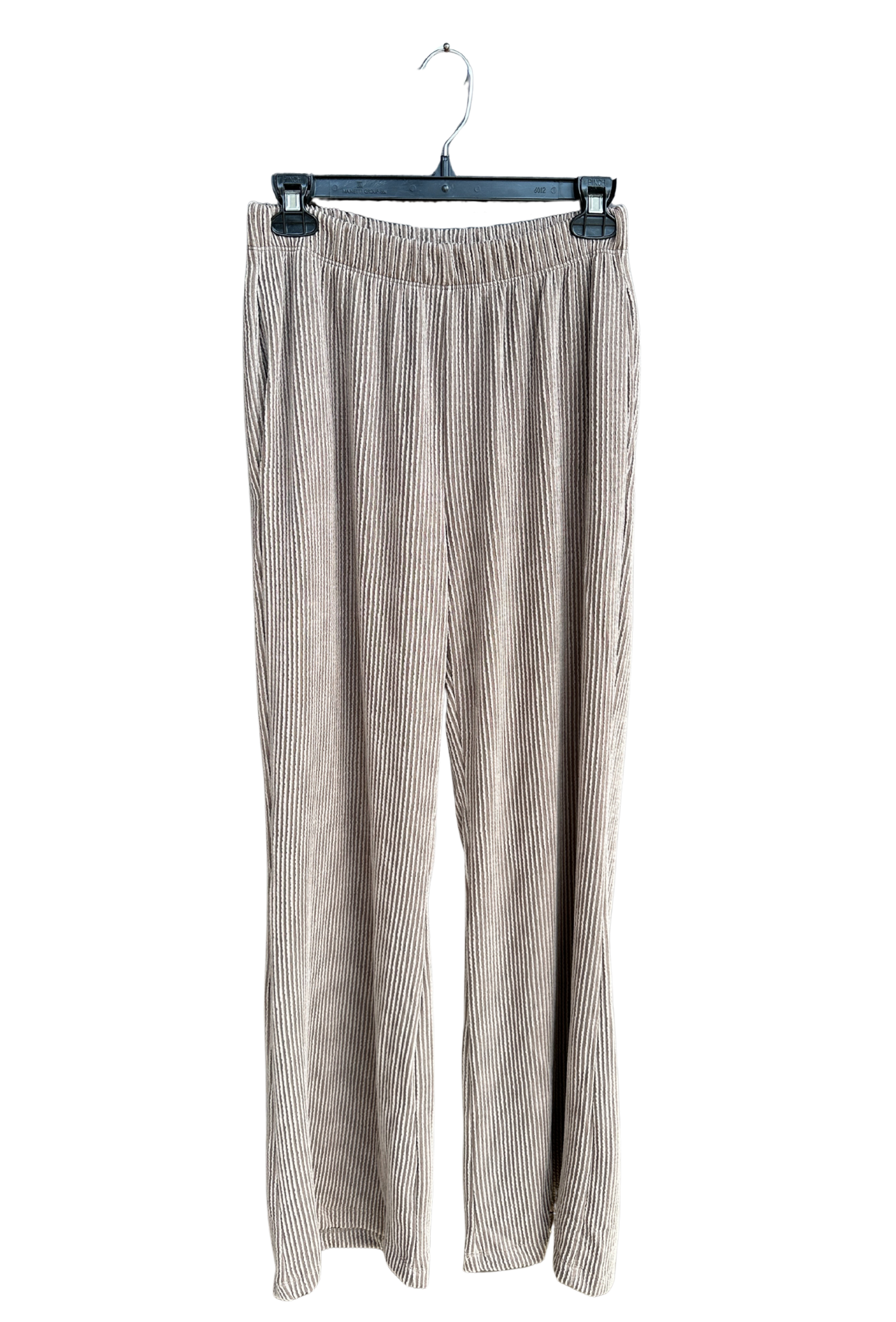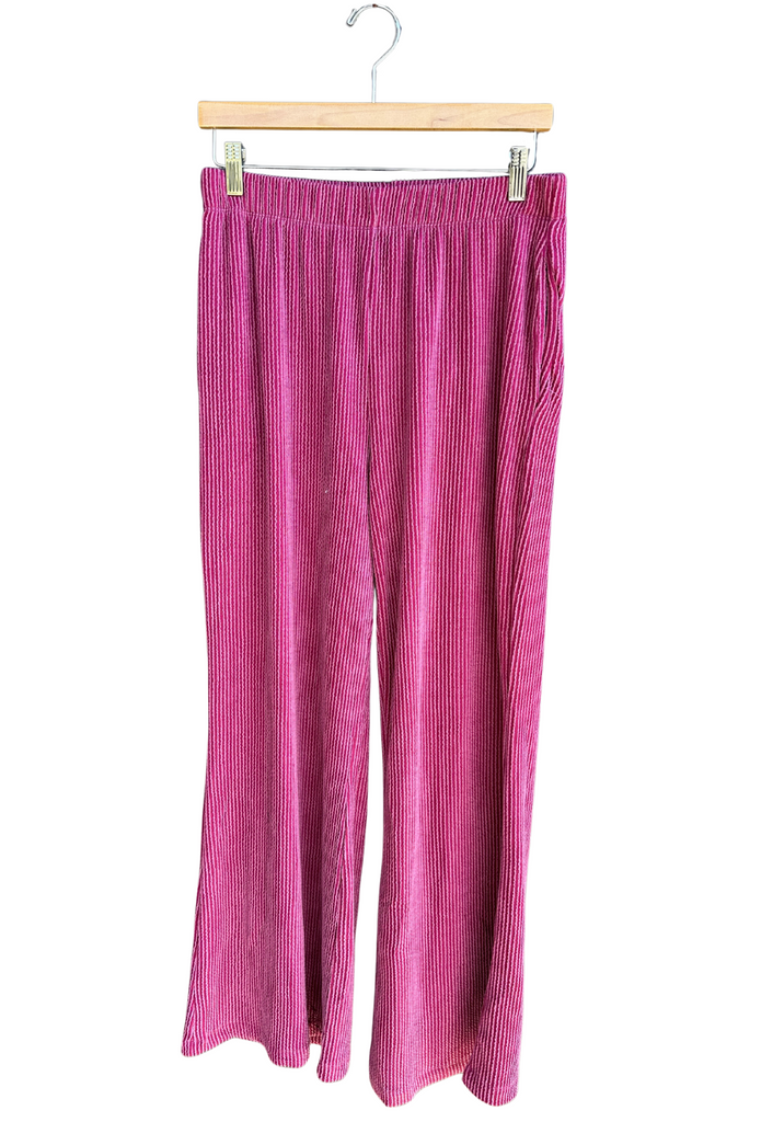 Experience ultimate comfort with Let's Stay In Pants. Featuring a soft ribbed texture, convenient pockets, and an elastic waist for a perfect fit, these pants are designed for effortless lounging. Ideal for relaxing at home or casual days, they combine cozy style with practical function. Make every stay-in day your favorite day.