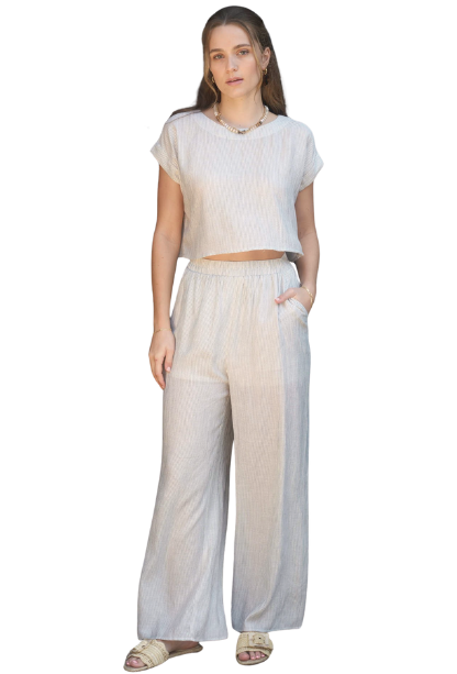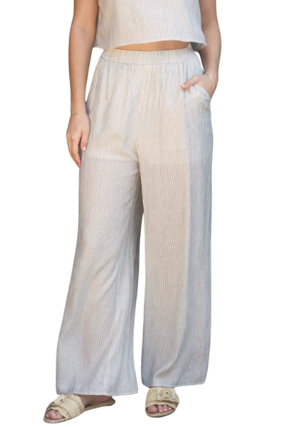 These Making Big Plans Pants feature a stylish pinstripe design and a comfortable elastic waist for an effortless fit. Made from breathable fabric, they keep you feeling fresh all day long. Perfect for coordinating with the matching top, they create a polished, put-together look ideal for any occasion.