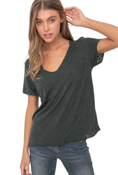 Experience effortless style and all-day comfort with our My Go To Tee! Featuring a flattering v-neck, short sleeves, and lightweight fabric, it's the perfect wardrobe staple for any occasion. Elevate your look and feel amazing in our must-have tee!