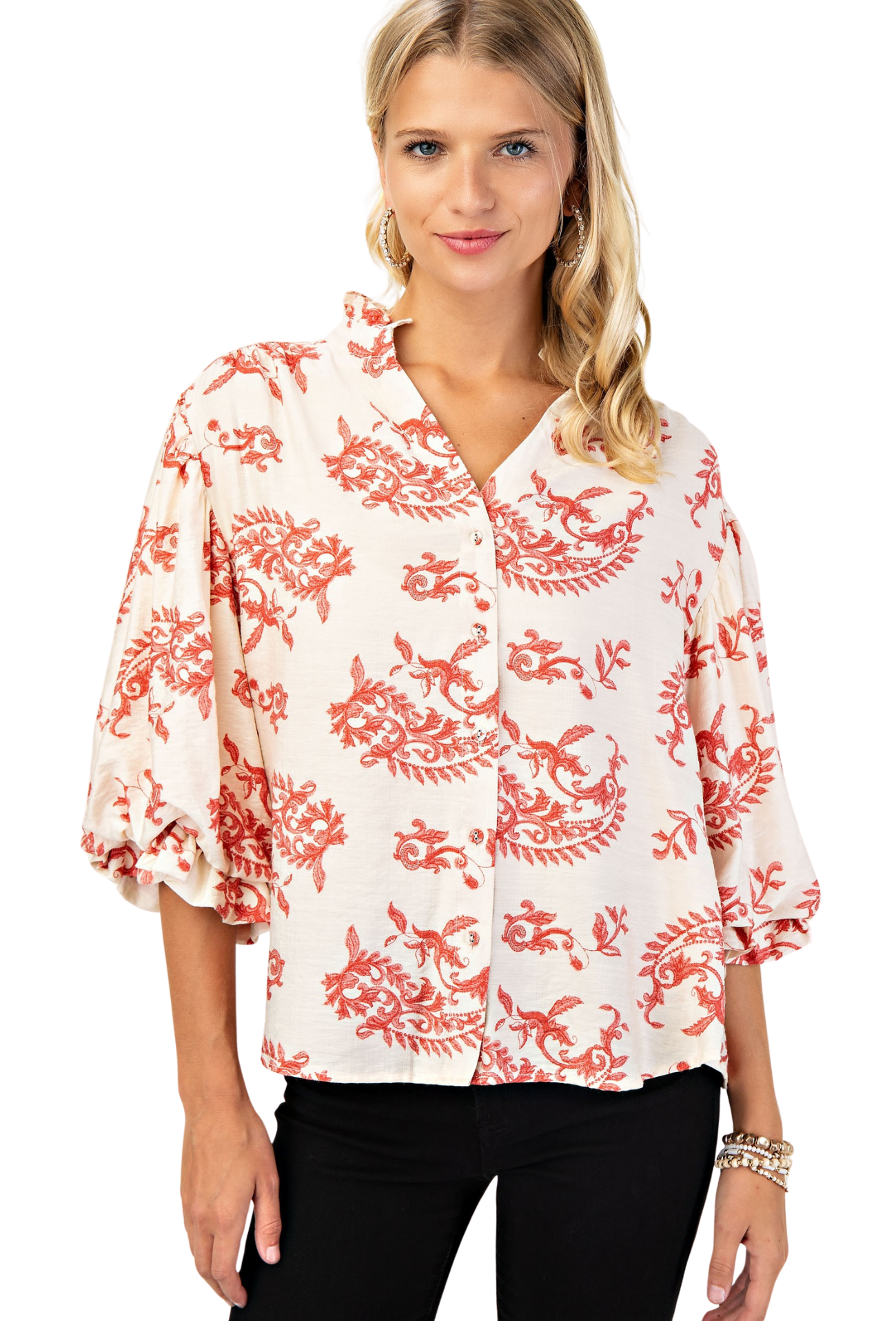 Elevate your wardrobe with the Take A Chance Blouse, featuring elegant puff sleeves that add a touch of romantic flair. Delicate button details enhance its sophisticated design, making it perfect for both casual outings and special occasions. Embrace effortless style and confidence every time you wear it.
